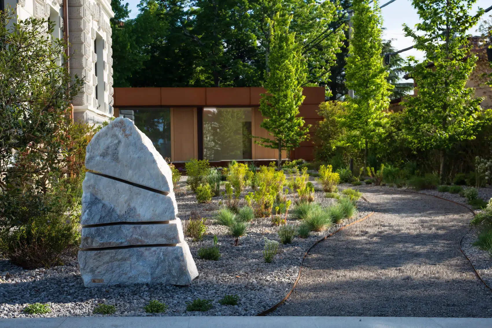 Zaključimo naš izbor vrtov desetletja Ambientov z vrtom, ki krasi izredno lepo obnovljeno vilo na Opčinah nad Trstom. Lastnik vile je k ureditvi novega vrta ob vili povabil znanega kraškega oblikovalca vrtov Boruta Benedejčiča. Pri snovanju vrta je oblikovalec upošteval dejstvo, da vrt sicer leži ob historični vili, vendar je hkrati vrt umestil v sodobnost. Izbral je rastline, primerne sredozemski klimi, dodal peščeno zastirko, značilno za njegove vrtove, in dal izdelati novo vrtno pohištvo iz moderne jeklene pločevine. Nastal je vrt, na katerem uživajo stanovalci nove-stare vile Wisteria.