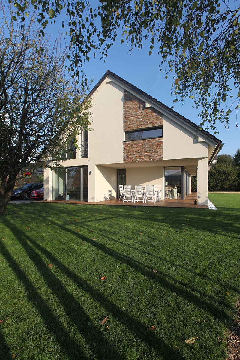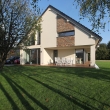 Hiša, ki se kar kopa v naravni svetlobi, se ponaša z odprto tlorisno zasnovo v pritličju in dobro izkoriščenimi podstrešnimi spalnicami v nadstropju.