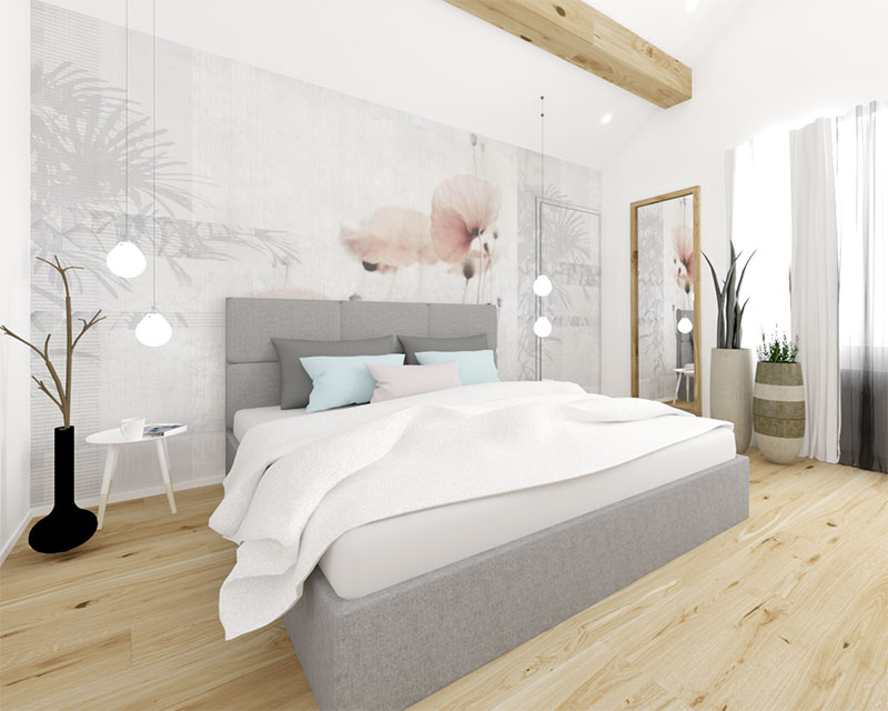 Poleg osrednjega prostora pa je bil predmet prenove tudi spalni del: arhitektka je trosobno stanovanje pretvorila v kar petsobno, tako da ima vsak družinski član zdaj perosnaliziran prostor zase, ki mu nudi mir in zasebnost. Spalnice so za razliko od dnevnega prostora opremljene v nežnejših tonih, ki jih dopolnjujejo tekstili v nevtralnih barvah in pa poudarki v lesu. Prostori so maksimalno izkoriščeni tudi v višino, vgradne omare pa prostor zavzamejo le tam, kjer je to nujno potrebno. Sanjskim spalnicam družbo delata še malo resnejši kabinet in bela kopalnica.