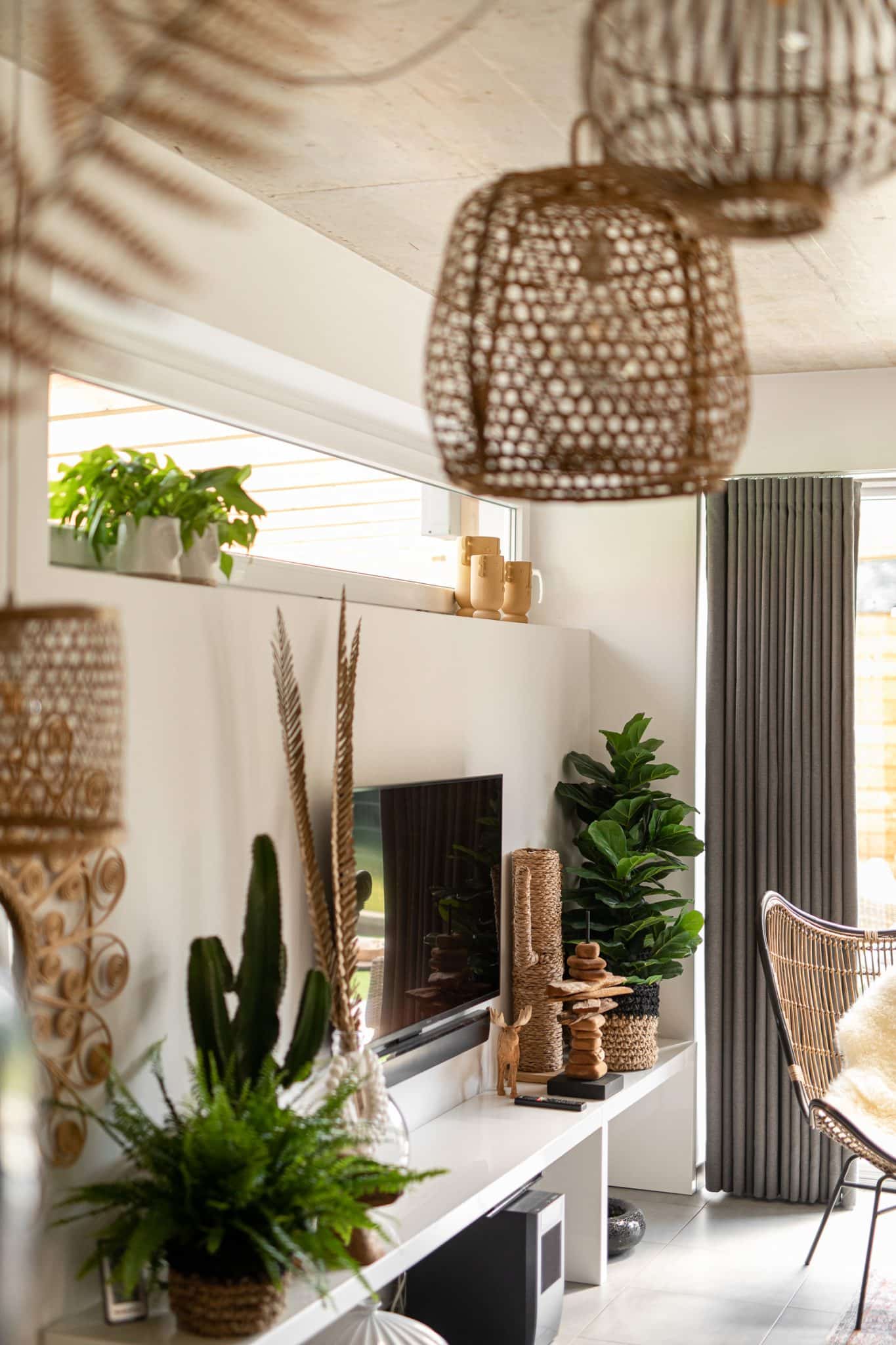 Tropsko vzdušje, ki nas pozdravi takoj ob vstopu v hišo, nam da vedeti, da je Barbara zelo povezana z rastlinami, kar pa ni prav nič nenavadnega, saj je v preteklosti imela svojo cvetličarno Mačica. Takrat, pravi, je še dodatno razvila žilico za urejanje interjerja. Tudi prijatelji so jo večkrat prosili, da jim pomaga urediti dom, pisarno ali lokal in tako tudi za svoj novi dom, ki ga je kupila v tretji gradbeni fazi, ni najela arhitekta, ker je pač sama točno vedela, kaj si želi in kako bo želeno dosegla.