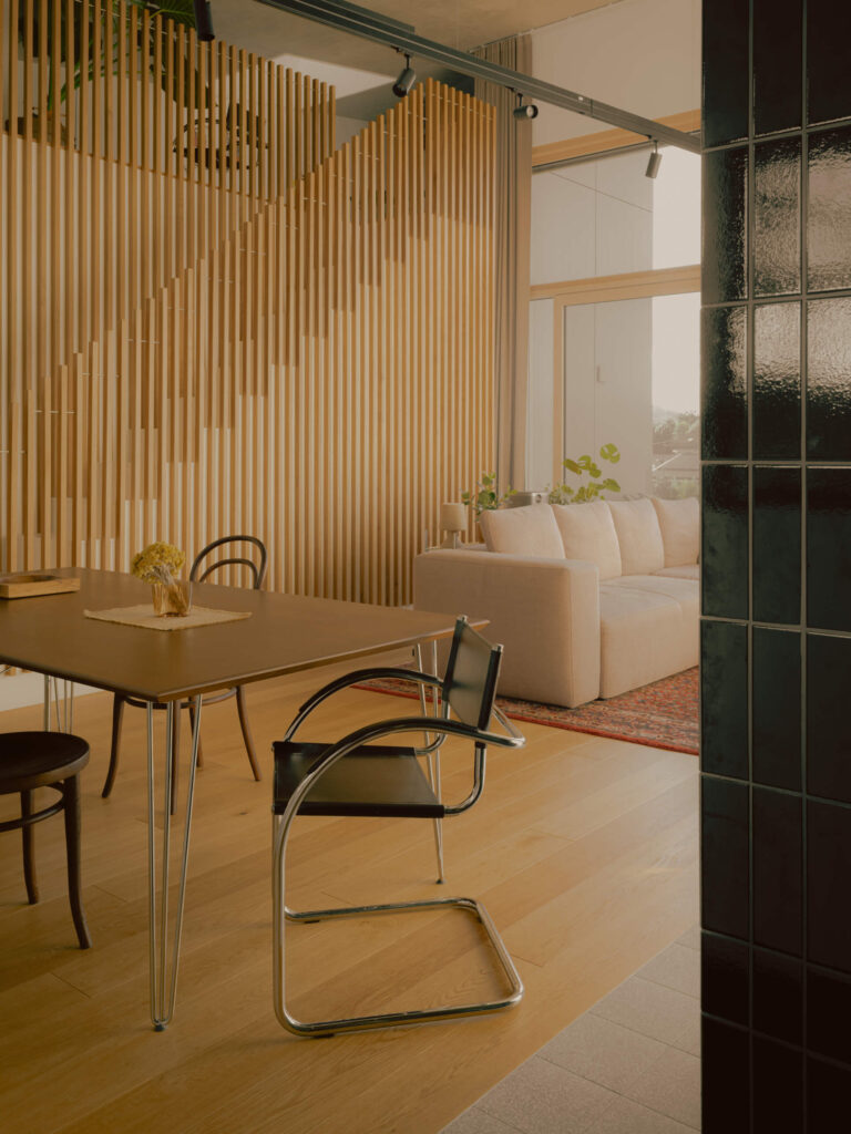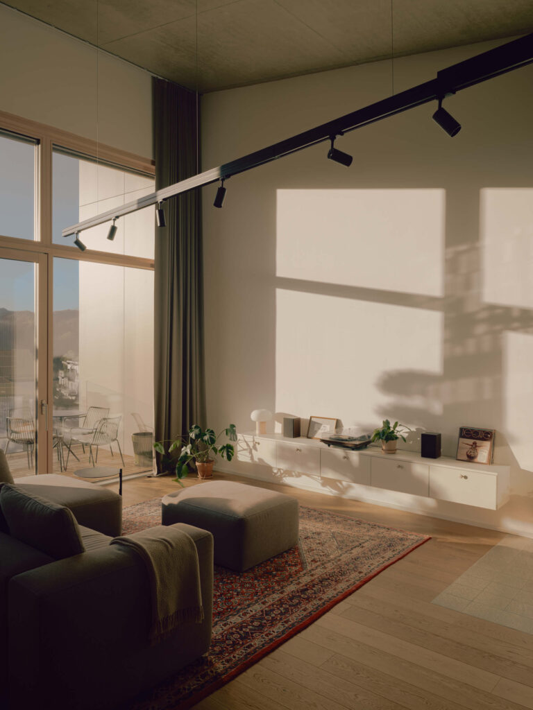 Mlada arhitekta Tim Zrimšek in Rok Perme sta dobila priložnost prilagoditi mansardno stanovanje v novem bloku v Ljubljani. Znašla sta se pred izzivom, kako čim bolje izkoristiti res zelo visok prostor, ki na najvišji točki sega pet metrov visoko.