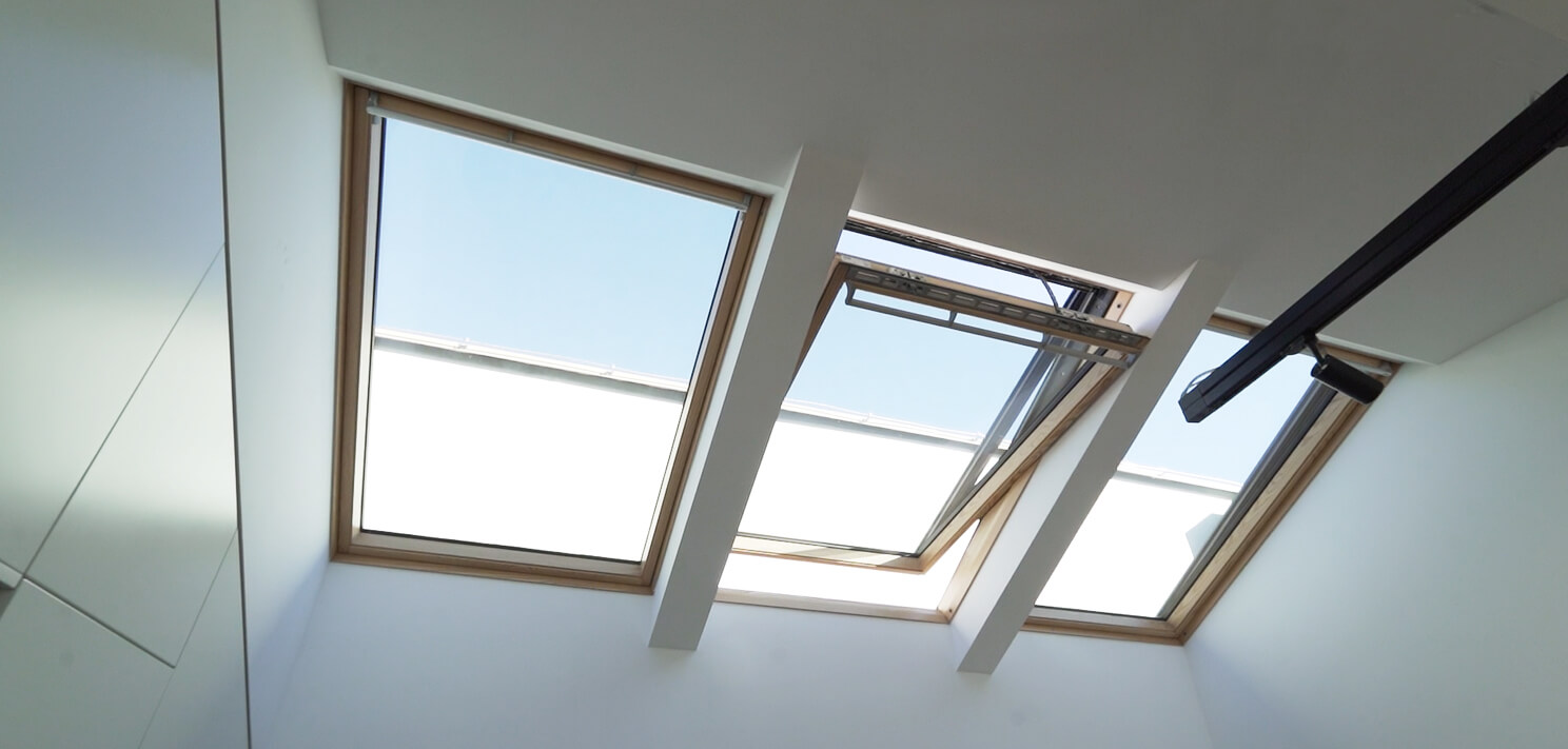 Pomembna lastnost strešnih oken in oken za ravno streho je tudi ta, da ponujajo možnost učinkovitega naravnega prezračevanja. Izmenjava zraka v prostoru je namreč učinkovitejša ob sočasnem odpiranju okna na strehi in strešnih oken, saj se ustvari prečni pretok zraka in obenem vzgon. »Ohlajevanje z naravnim prezračevanjem je dobrodošlo zjutraj ali tekom noči v poletnih mesecih. Skrbi, da elektrificirano okno ostane odprto v slabem vremenu pa ni, saj imajo okna že tovarniško integriran dežni senzor,« še doda Neža Močnik.