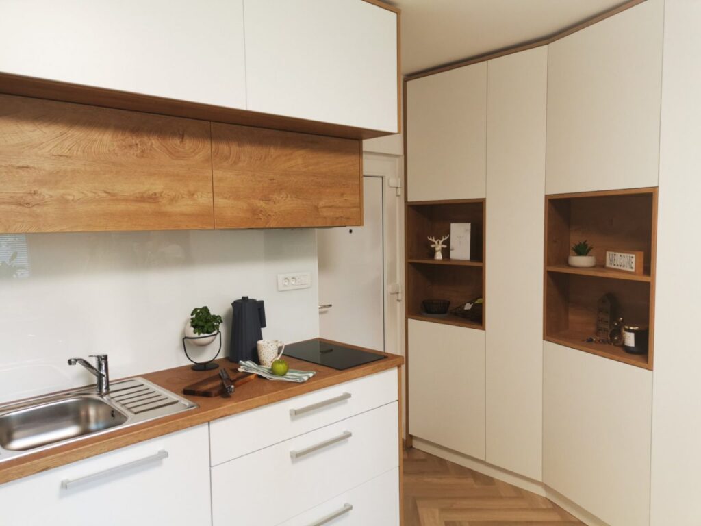 Da za udobno življenje človek ne potrebuje veliko kvadratov, smo se prepričali v 18 m2 velikem stanovanju v enem od medvoških blokov. Omejenost prostora, ki je še najbolj spominjala na kamp prikolico, je lastnika pripeljala k domiselnim rešitvam: pohištvo sta dala izdelati po meri ter stavila na belo barvo, ki optično poveča ambient, in lesene poudarke, s katerimi sta vanj vnesla toplino.