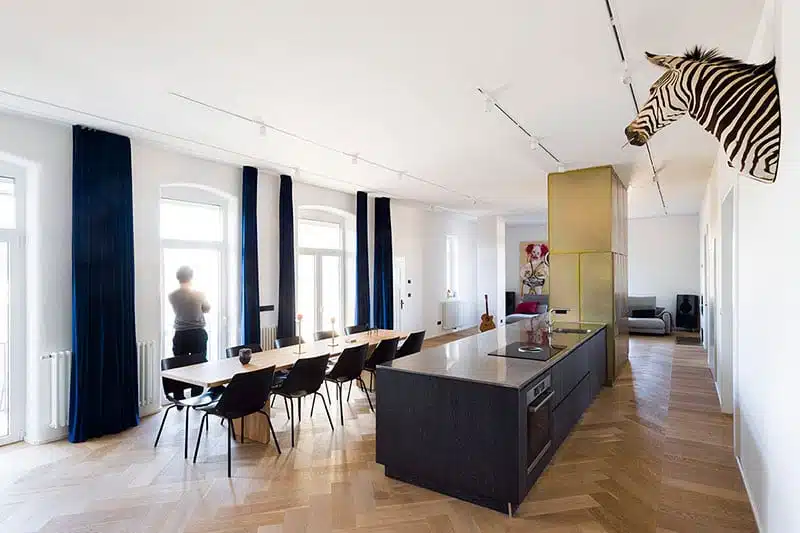 Po drugi strani pa razkošje kvadratnih metrov v resnici nikoli ni zares odveč. V Ljubljani smo se sprehajali po kozmopolitskem stanovanju, ki ima samo kopalnico tako veliko kot je garsonjera, njegova dnevna soba pa v dolžini meri kar 20 metrov.