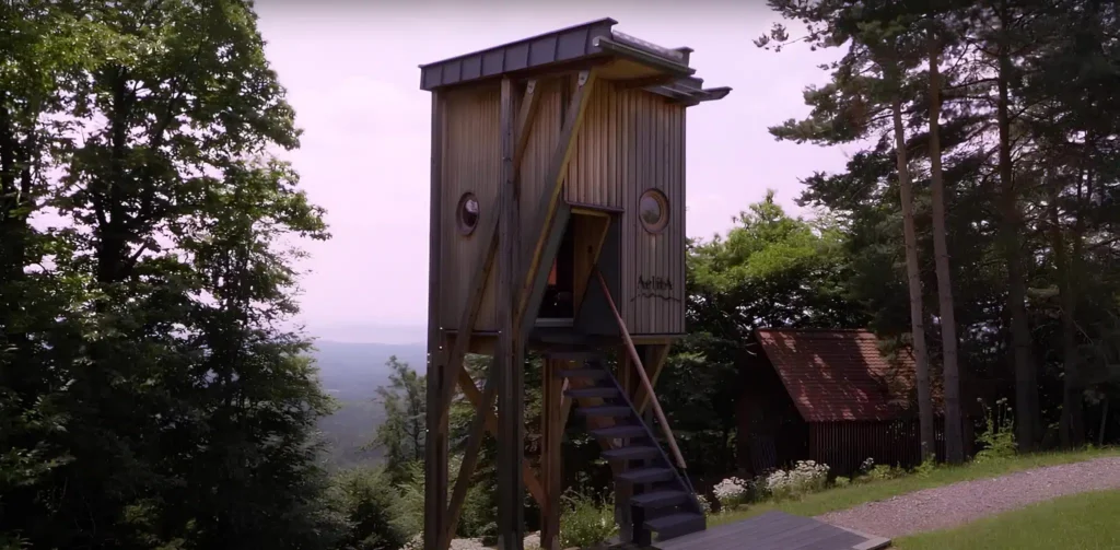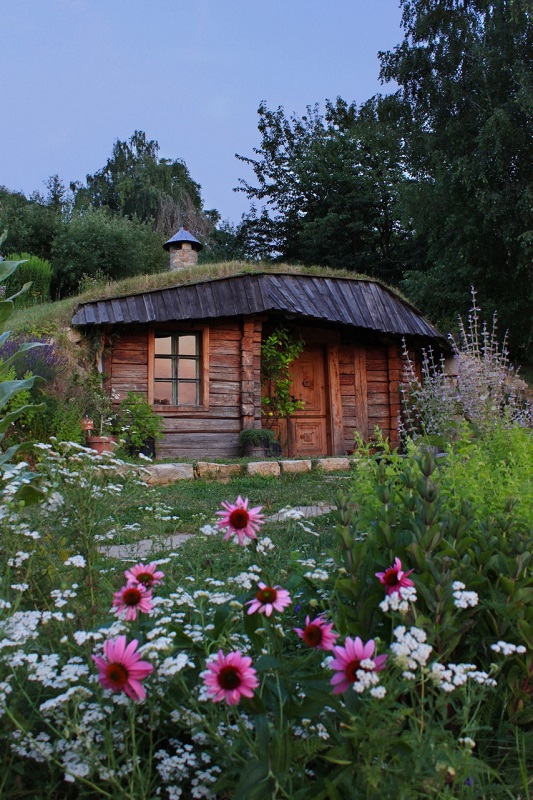 Začnimo pod zemljo. Ljudje že stoletja gradijo bivališča pod površjem, predvsem zaradi boljšega občutka varnosti, zaščite pred vremenskimi pojavi in varčevanja z energijo. V Slovenskih Goricah sta zemljanko oziroma hobitsko hiško iz naravnih materialov, predvsem lesa, postavila zakonca Kolarič. V njej imata čajnico, zato vedno opojno diši po zeliščih, čaju in tlečih polenih.