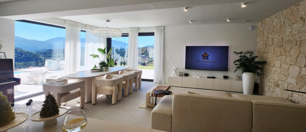 Ambientov ne ustavijo niti meje. Večkrat smo že obiskali sosednjo Istro in se preko ocena odpravili vse do Avstralije. V Grožnjanu smo odkrili prenovljeno staro hišo, v kateri sta lastnika ohranila originalne črne tramove in stene z inovativnim pleskarskim pristopom odela v zlat odtenek. Na avstralski celini ob Gold Coastu pa je zrasla čisto nova vila, ki sta jo v sodelovanju z arhitektom Jaredom Poole-om postavila Slovenka Dina Velikajne Kenins in njen mož Martin. Hiša pooseblja razkošno eleganco, ima kar dve dnevni sobi, lastno kinodvorano in bazen, prejela je tudi vrsto arhitekturnih nagrad.
