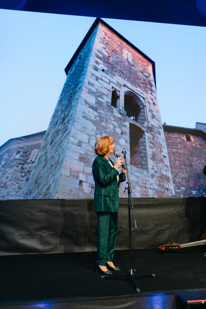 Poseben del večera je bil posvečen samemu prizorišču, saj je ekipa Ambientov nedavno posnela tudi dokumentarni film o prenovi Ljubljanskega gradu. O tem izjemnem podvigu je spregovorila arhitektka Majda Kregar, ki je s soavtorji zasnovala to najbolj drzno prenovo pri nas. Njen nagovor je osvetlil transformacijo propadajoče utrdbe v vitalno kulturno središče, kar si lahko ogledate v filmu Krona nad mestom – Ljubljanski grad.