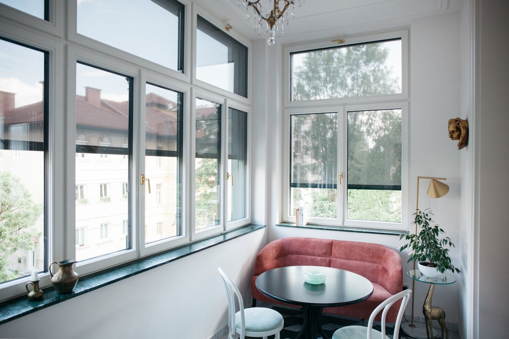 Secesijski slog, ki je v Ljubljani svoj pečat pustil na stavbi SNG Drame, galerije Emporium in Zmajskem mostu, je vplival tudi na številne meščanske vile, zgrajene med Miklošičevo ulico in železniško postajo. V eni od takšnih rekonstruiranih vil smo naleteli na omikano stanovanje, ki združuje utrip preteklosti s tehnologijami modernosti. Med slednjimi omenimo motorizirana zunanja senčila, ki varujejo intimo interierja, ker se popolnoma skrijejo v podometno omarico, v notranjost pa skozi tipično manjša staromeščanska okna prepuščajo obilo svetlobe.