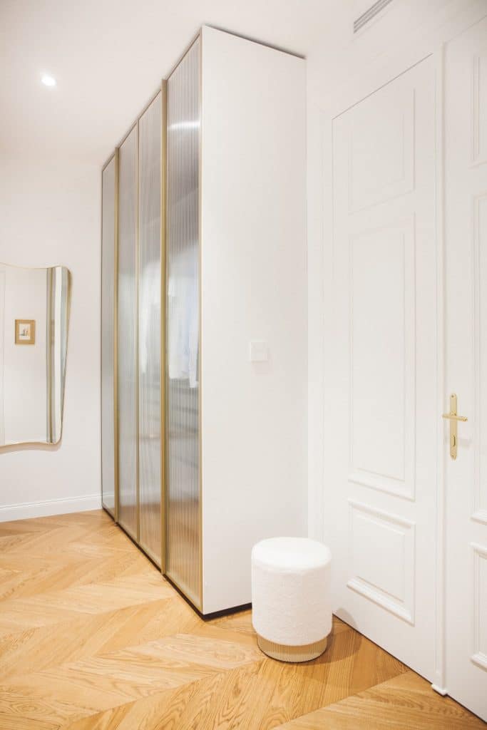 Največji izziv je bilo usklajevanje na videz starega objekta s sodobnimi tehnološkimi rešitvami, ki so se jih zelo trudili skrivati, »ker takoj ko ti to vidiš, zaznaš, da objekt ni zares star. Torej uničiš staromeščanski videz in občutek prostora,« pove arhitektka. Inštalacije so na primer skrili za spuščene strope, vse elektro omarice, ki jih je v tem stanovanju več kot običajno, so za markantnimi ogledali na hodniku, predvsem pa so tehnične elemente umestili v servisne prostore, kjer so neopazni. Enako so ravnali pri senčilih; izbrali so takšna, ki se ob neuporabi popolnoma skrijejo, kadar se jih potrebuje, pa nudijo vse visokotehnološke prednosti.