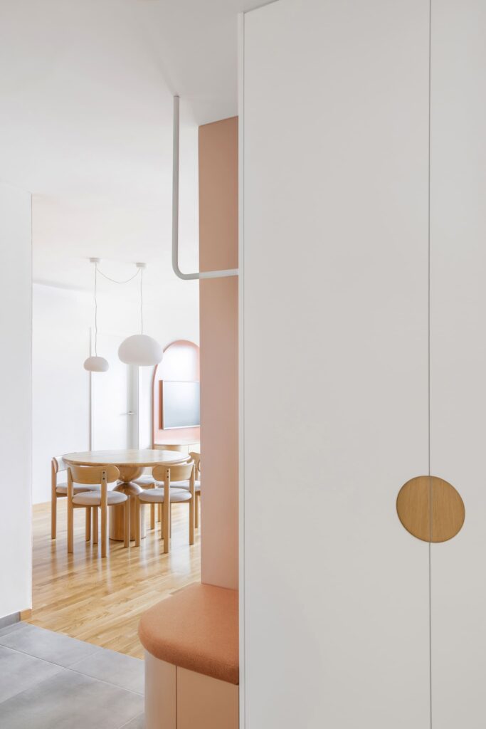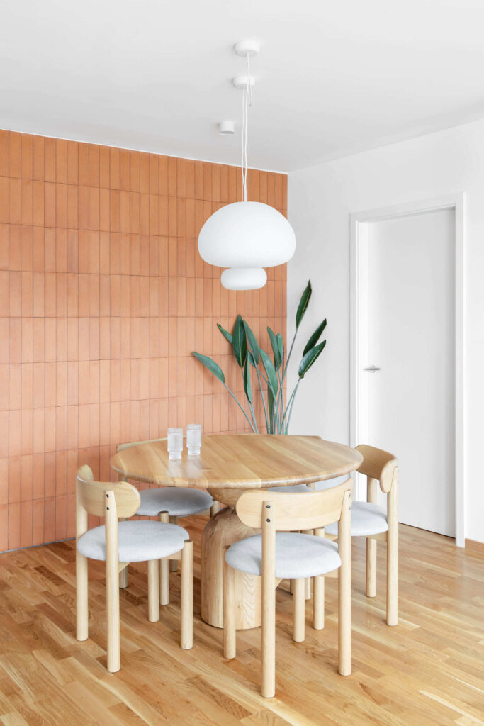 V Žalcu, v najvišjem nadstropju stanovanjskega bloka, se odpira pogled, ki presega vsakdanje. Tam, kjer se stikata nebo in opečnata barva, je nastalo stanovanje BRIK – dom, ki govori jezik topline, naravnosti in subtilne igrivosti. Avtorici projekta, arhitektki Vivijana Zorman in Darja McDonnell, sta skupaj z naročnikoma zasnovali prostor, ki združuje funkcionalnost sodobnega življenja in estetsko čistost z močnim osebnim pečatom.