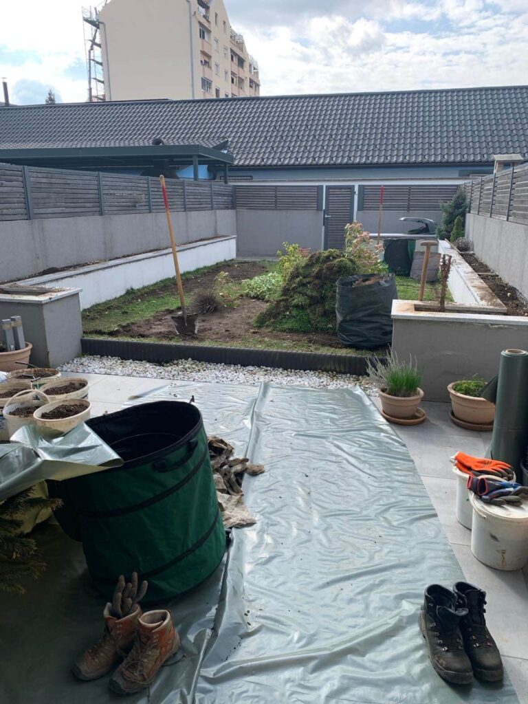 Ko se je Maja Dragan z družino leta 2019 vselila v stanovanje z atrijskim vrtom, je ta deloval precej drugačen. Toga zelenica na sredini, ob straneh dva izstopajoča prazna zidka in vidno moteč prezračevalni jašek nad podzemno garažo so prostoru dajali okorno podobo. »Sprva smo dodali le dve veliki koriti, nekaj rož in zelišč. Finančno, predvsem pa organizacijsko, ni bilo možnosti, da bi vrt takoj uredili v celoti,« pripoveduje lastnica.