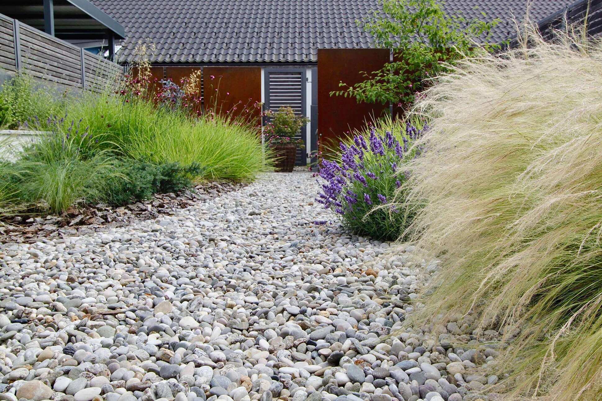 Zunanji ambient je dobil mehkejši ritem v trenutku, ko je bila določena lega potke. Matic se je izognil ravni liniji in ustvaril subtilno vijugo iz prodca. S tem je zmanjšal občutek strogosti in hkrati optično povečal prostor: oko ne zdrsi naravnost do konca, temveč potuje nežno, dalj časa. Krivina prinaša gibanje in sproščenost, vrt pa kljub majhnosti zaživi v večplastnosti.