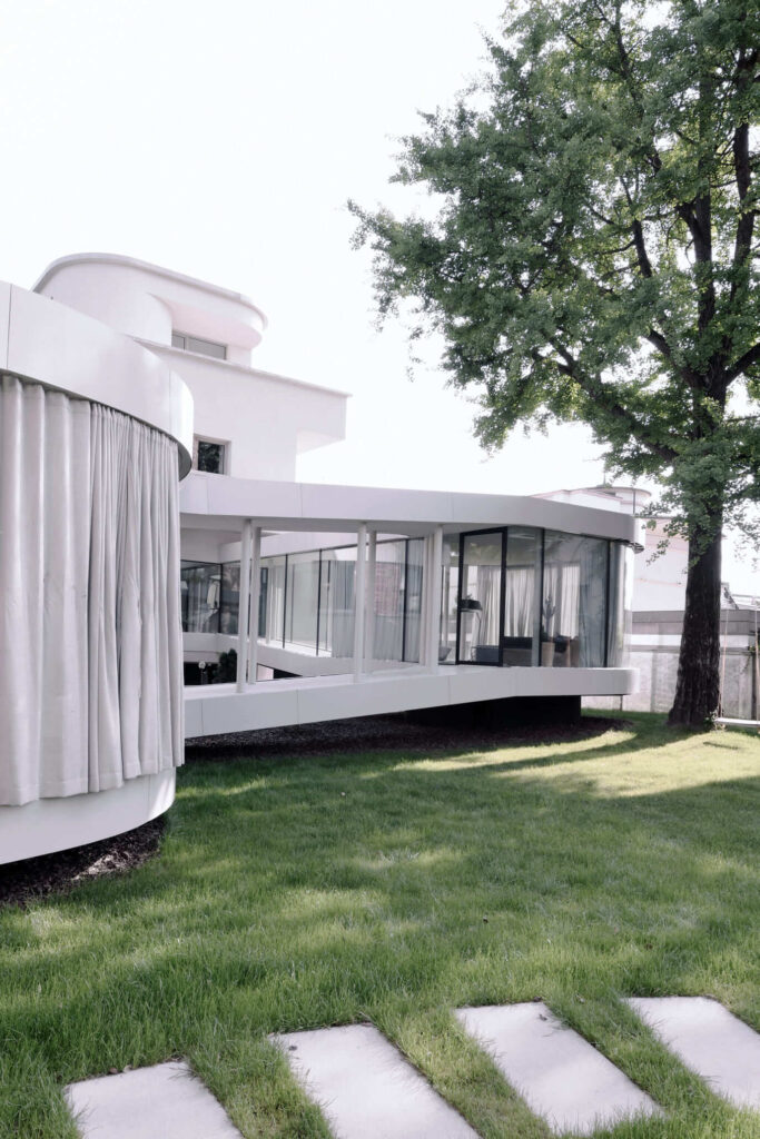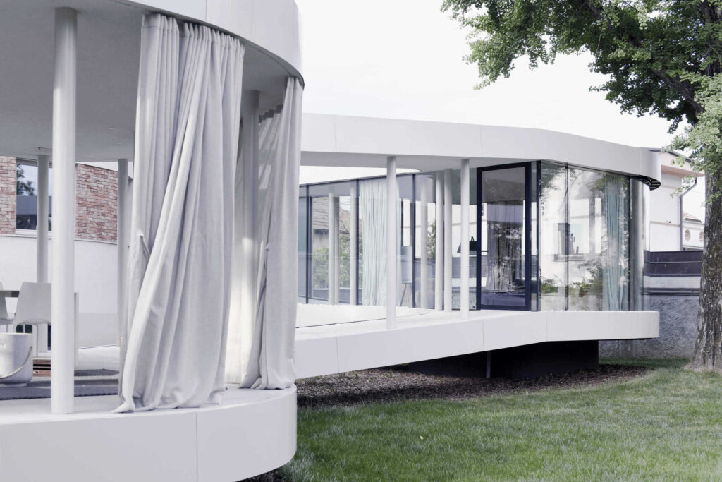 Prva faza prenove je bila zato usmerjena v ponovno vzpostavitev izvornih arhitekturnih kvalitet vile. Poševna streha je bila odstranjena, s čimer so se ponovno vzpostavila razmerja modernističnega kubusa. V naslednji fazi pa so se lotili oblikovanja podaljška hiše, paviljona, ki notranjost povezuje z vrtom. Njegova mehka, organska forma ne posnema izvorne arhitekture, temveč jo dopolnjuje in z zavestnim kontrastom dodatno poudari modernistični značaj vile.