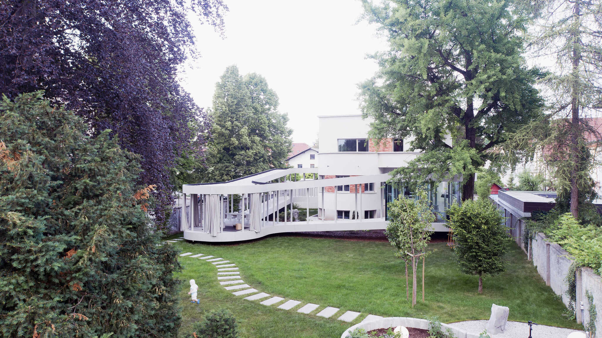 V predmestju Ljubljane, v naselju meščanskih vil, lahko občudujemo sodoben pristop k prenovi, ki je plod zglednega sodelovanja med naročnikom in arhitekti. Hibrid prvotne modernistične vile iz 30. let minulega stoletja in njenega sodobnega podaljška, lahkotnega paviljona, ki jo z mehkimi krivuljami povezuje z vrtom. A prvotno stanje je bilo daleč od tega, stoletje stara hiša pa daleč od nekdanjega sijaja.