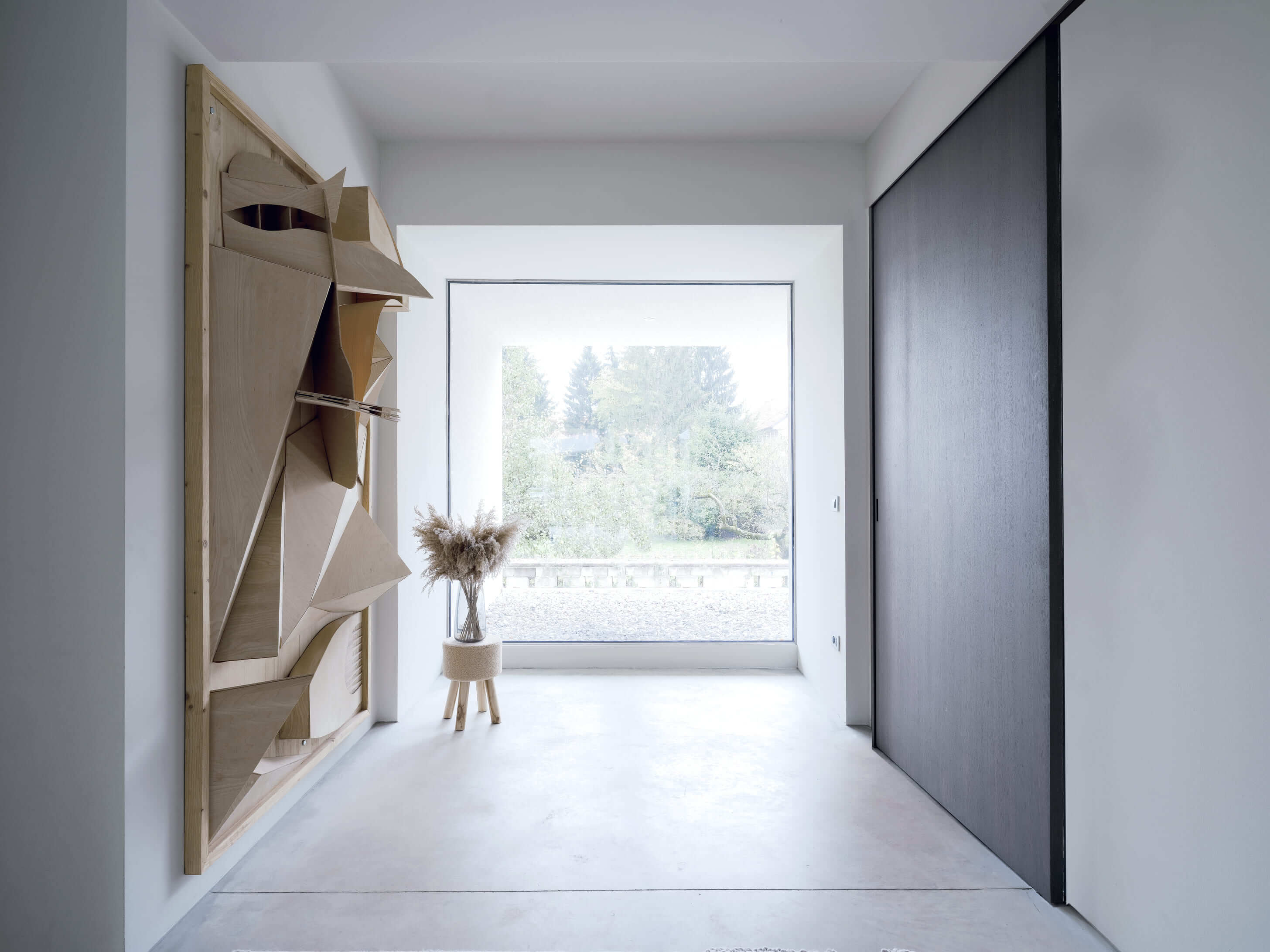 V novonastalo »skulpturo« so umestili jedilnico, medtem ko je bila osrednja ambicija projekta ponovno povezati hišo z obsežnim vrtom. Ta je namreč več kot dvakrat večji od tlorisne površine objekta. Pomembna višinska razlika med pritličjem in vrtom je postala prostorski generator zasnove. Namesto uporabe klasičnih teras ali stopnišč je bil prizidek zamišljen kot neprekinjeno prostorsko zaporedje, ki posreduje med notranjostjo hiše in krajino.