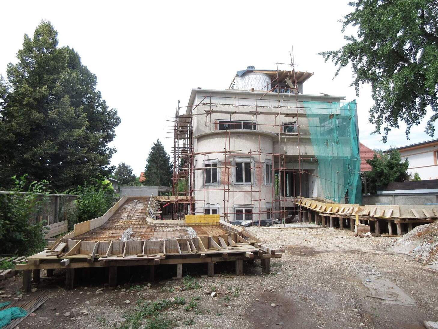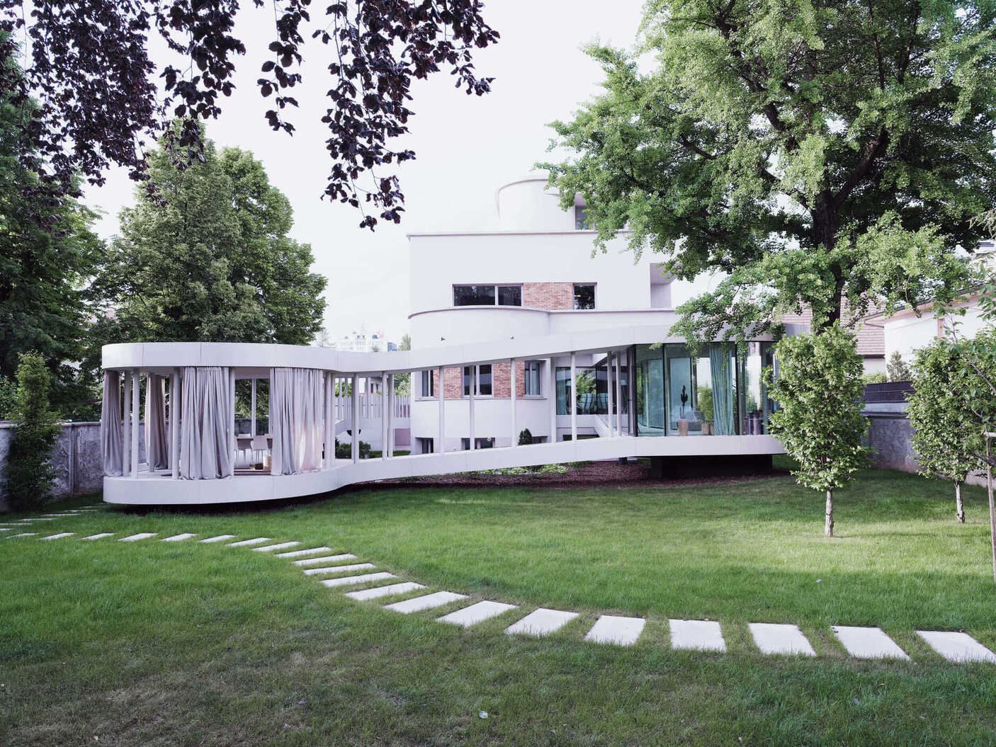 Prva faza prenove je bila zato usmerjena v ponovno vzpostavitev izvornih arhitekturnih kvalitet vile. Poševna streha je bila odstranjena, s čimer so se ponovno vzpostavila razmerja modernističnega kubusa. V naslednji fazi pa so se lotili oblikovanja podaljška hiše, paviljona, ki notranjost povezuje z vrtom. Njegova mehka, organska forma ne posnema izvorne arhitekture, temveč jo dopolnjuje in z zavestnim kontrastom dodatno poudari modernistični značaj vile.
