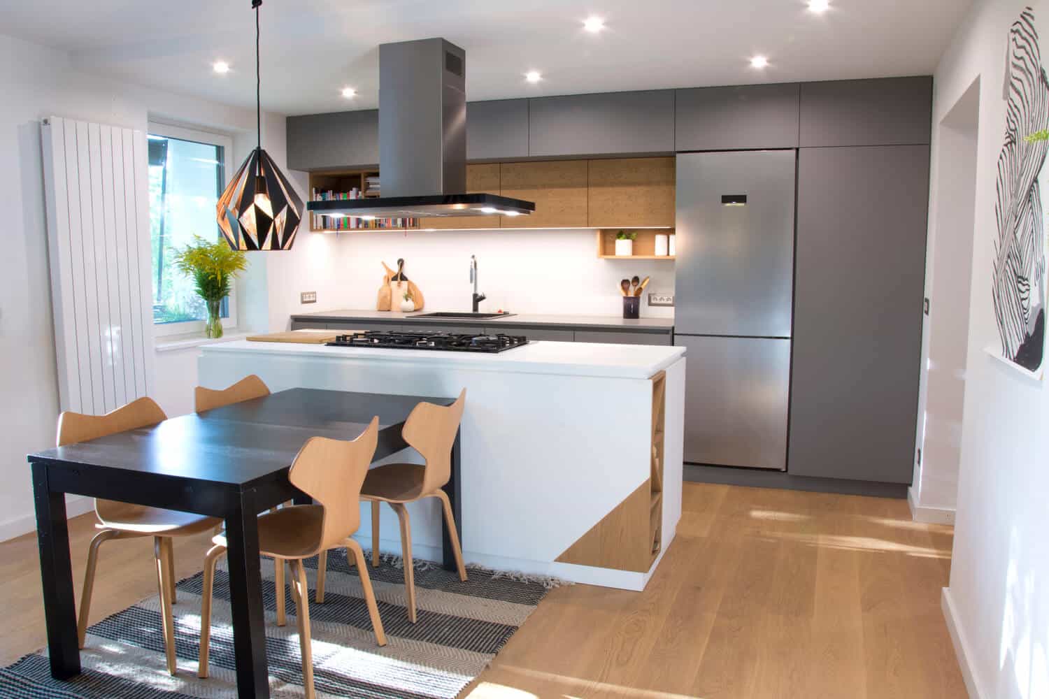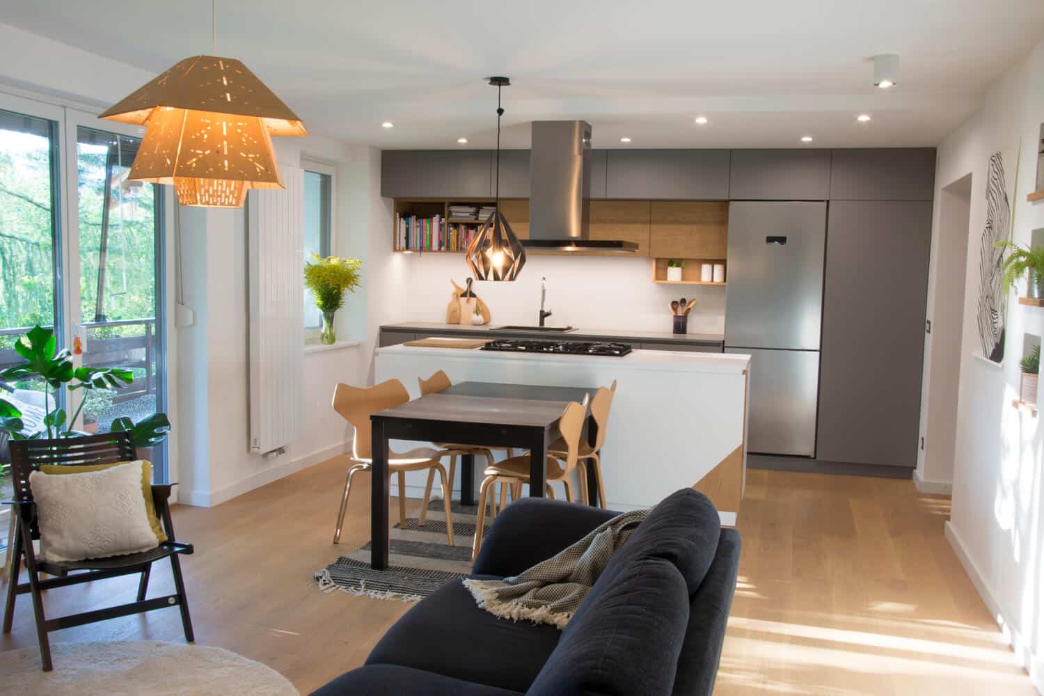 “Vse nenosilne stene so bile odstranjene, namesto majhnih prostorčkov pa smo ustvarili velik, povezan dnevni prostor. Na mestu nekdanjega hodnika smo ustvarili večjo kopalnico,” začneta zgodbo o prenovi arhitekta, ki sta med drugim otroški sobi našla prostor v stari kuhinji, v nekdanji kopalnici pa uredila utility.