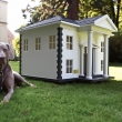 Podeželska pasja hiška za kosmatince, ki imajo raje preprostejše življenje. Narejena je v skandinavskem slogu, prebarvana z vodoodporno barvo in s kritino iz bitumenske lepenke, ki ne prepušča dežja. To je hiška, narejena, da traja desetletja.
