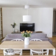 Premišljena barva paleta – naravni odtenki hrasta, bela in siva barva – bi lahko delovala pusto in minimalistično, čemur so se arhitekti izognili tako, da so opremo sprojektirali z zanimivimi detajli – profiliranimi ličnicami v kuhinji, lesenimi zaključki in izbranimi ročaji omaric. Dom pa dopolnjujejo še sodobni dodatki za dom ter družinina kolekcija umetniških del in grafik.
