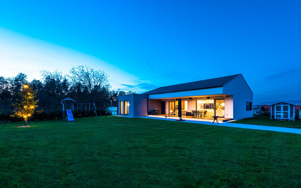 Čeprav je bil dom mlade družine zasnovan povsem netipično, so pri Lumarju radi sprejeli izziv in izvedbo popolnoma prilagodili lokaciji in željam družine. Hiša je zgrajena v konceptu Lumar Zero Emission Living, ki upošteva ključne kriterije trajnostne gradnje, bivalnega ugodja, nizke porabe energije in s tem majhnega vpliva na okolje. Družini je tako zagotovljeno prijetno bivalno ugodje v vseh letnih časih, s hkratnimi nizkimi obratovalnimi stroški. Ogrevajo se s toplotno črpalko zrak-voda, svež zrak pa venomer kroži zahvaljujoč prezračevalni napravi z rekuperacijo.