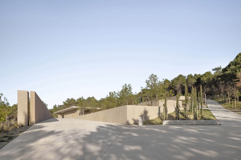 Pokopališče v Ankaranu je zasnovano kot tiha sprehajalna pot nad morjem, kjer se arhitektura in krajina prepletata v enotno doživetje. Projekt nežno sledi naravni topografiji in se odpira proti obzorju, zato obiskovalca ne vodi le med grobovi, temveč skozi niz umirjenih teras, ki jih povezuje ritem svetlobe, senc in odprtih pogledov.