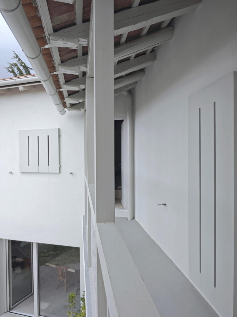 Preostale tradicionalne elemente ‒ zgornji »gank« (balkon), kamnite zidove, škure (lesena polkna) in težke korce so v ta namen obnovili in na novo subtilno interpretirali. Njihova oblika ostaja, medtem ko je funkcija nekoliko posodobljena, kar zagotavlja kontinuiteto med dediščino in potrebami sodobnega bivanja.