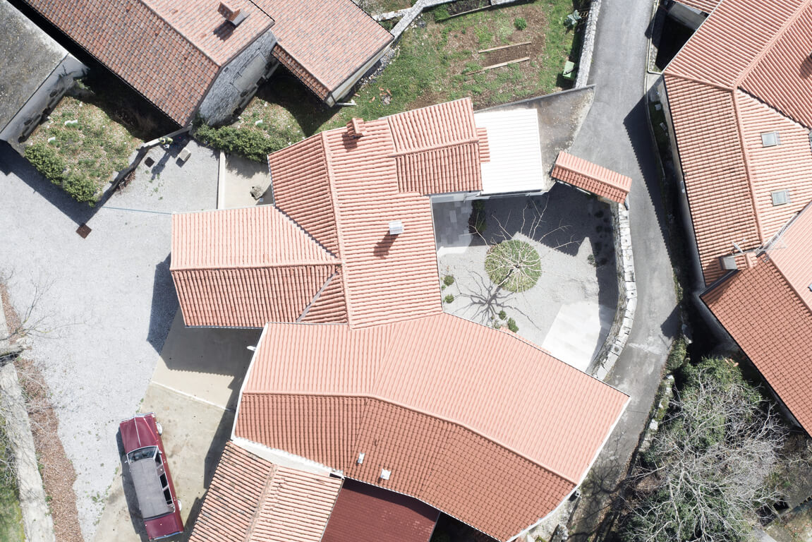 Projekt kot tak sledi načelu ponovne rabe in zmernosti. Kjerkoli je bilo mogoče, so obstoječe strukture in materiale ohranili. Strehe, obtežene s tradicionalnimi korci, so bile skrbno obnovljene, kamniti zidovi popravljeni, lesena polkna pa oživljena. V notranjost so posegali le z nujnimi posegi, ki zagotavljajo udobje in učinkovitost, medtem ko so se vsem nepotrebnim izognili. Takšen premišljen pristop zmanjšuje okoljski vpliv in hkrati ohranja avtentičnost domačije.