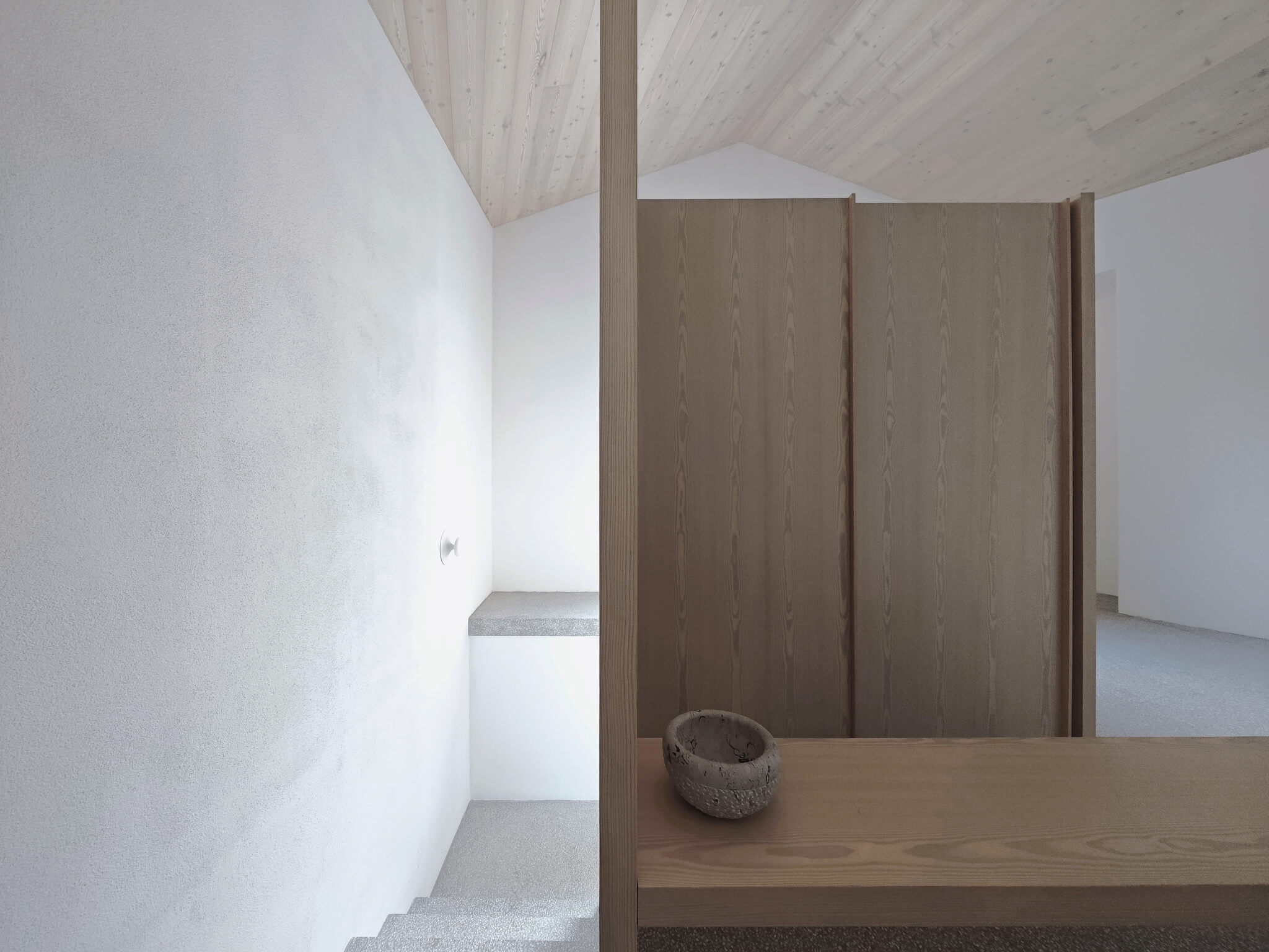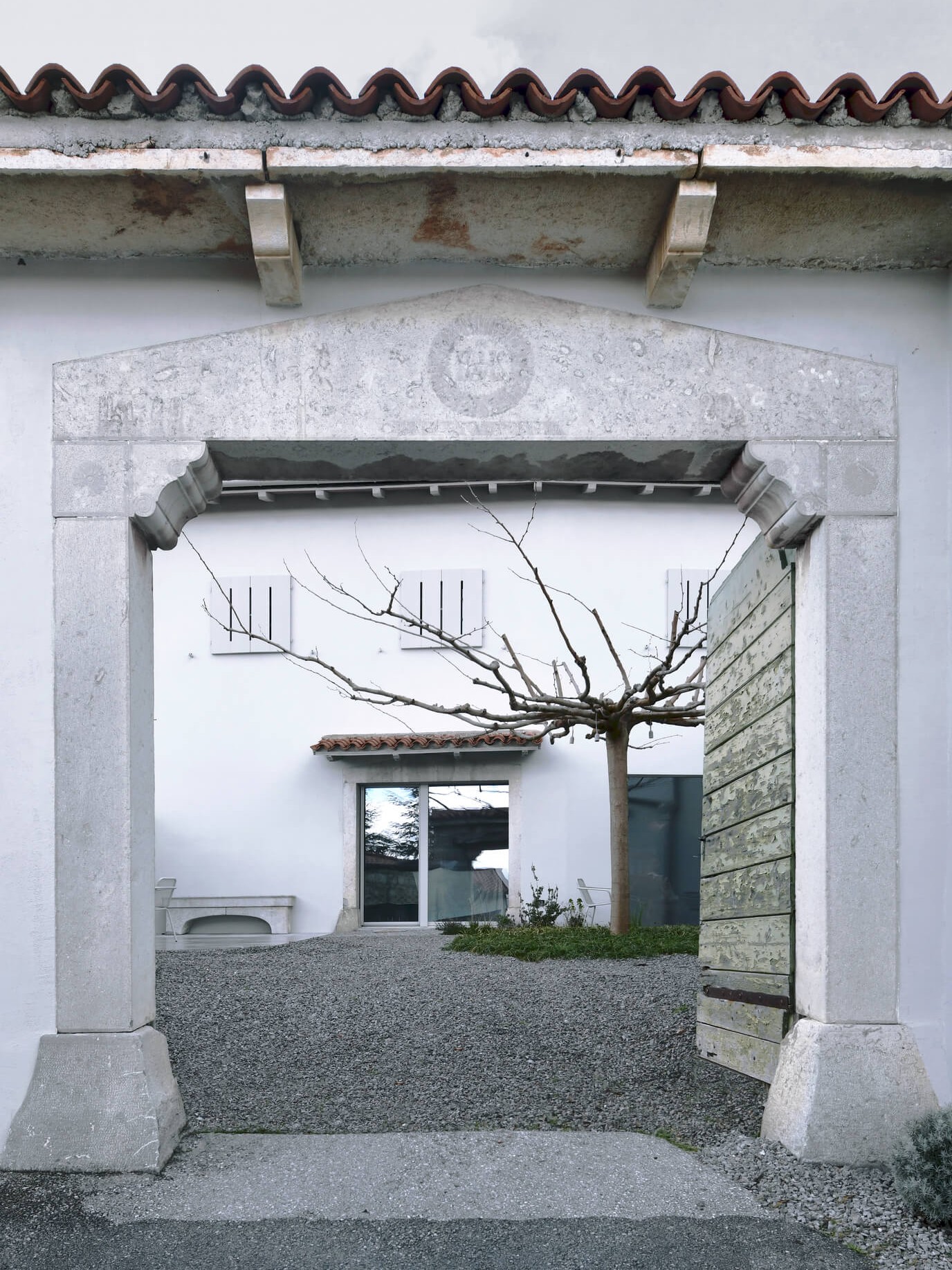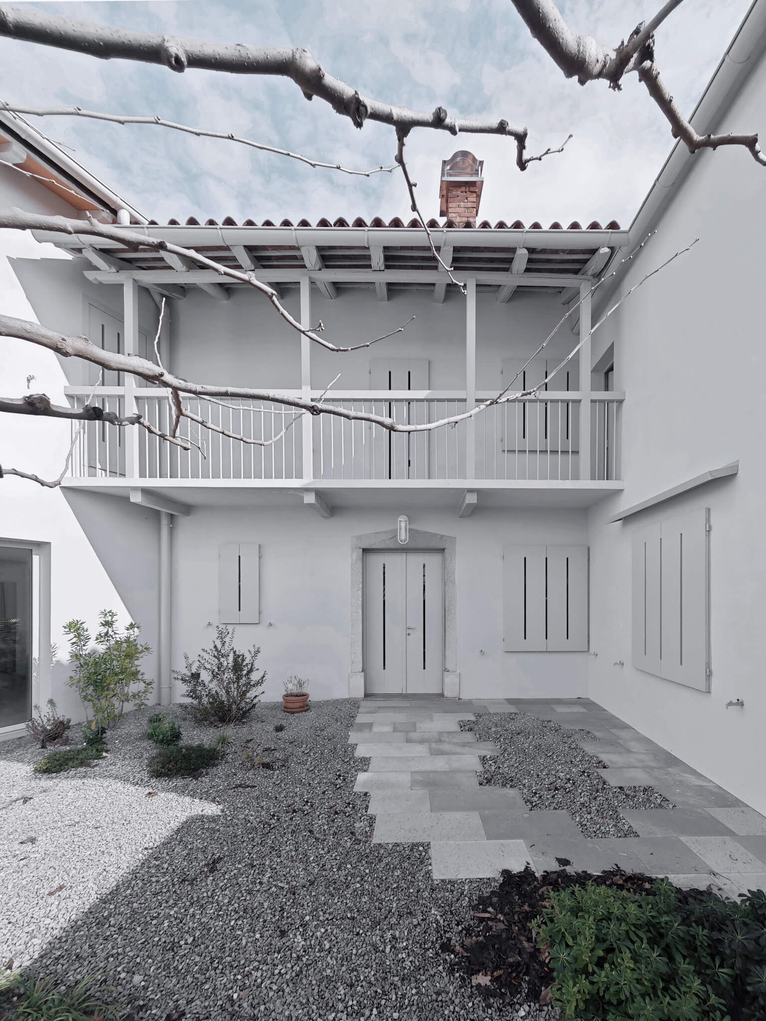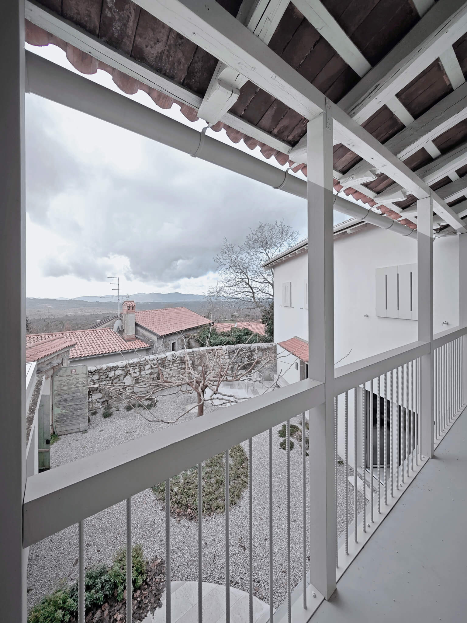 Prenova poudarja materialno iskrenost domačije: grobi kamniti zidovi ostajajo vidni in kot taki pričajo o minulih dneh. Nekdanji kmetijski elementi pa so prevzeli nove vloge. Korito za krmo se transformira v element police, kmečke niše se preobrazijo v shranjevalne prostore. Dvorišče, nekoč povsem funkcionalno, se preobrazi v podaljšek dnevnega prostora – zavarovan pred burjo, a odprt ritmu vaškega življenja. Notranjost je na novo razporejena z mislijo na svetlobo in prostorsko jasnost, pri čemer udobje biva v tihem ravnovesju s težo izvornih kamnitih struktur.
