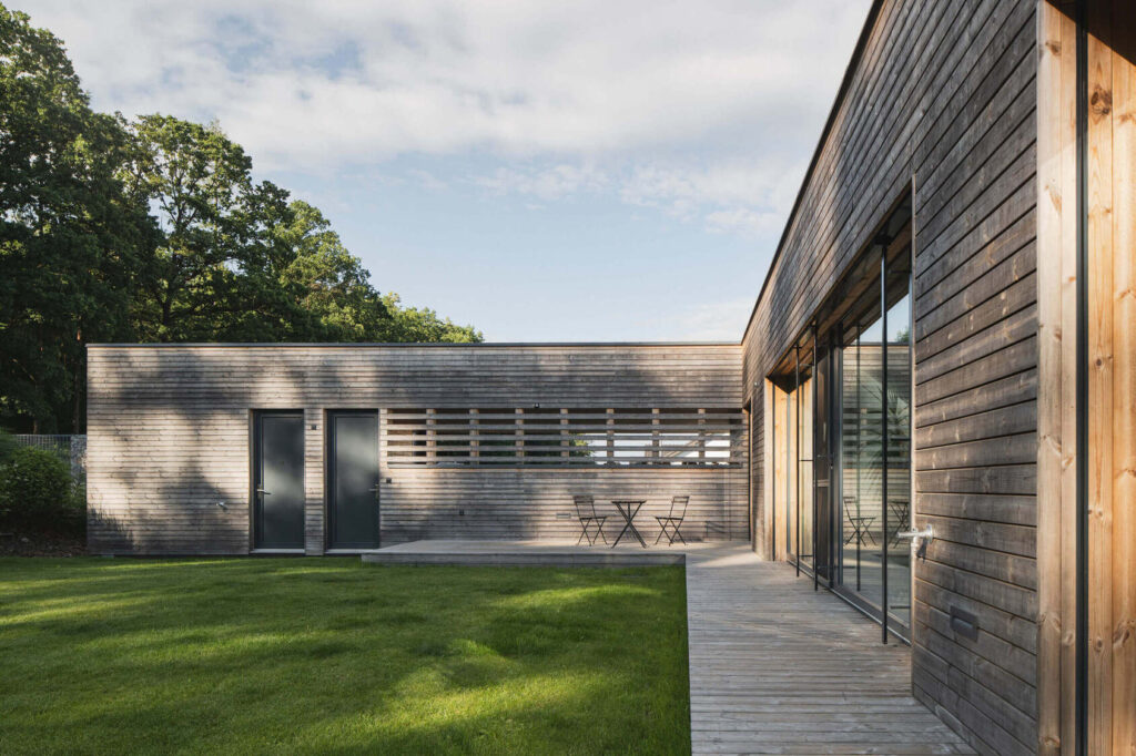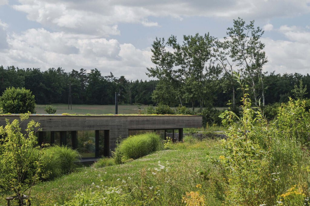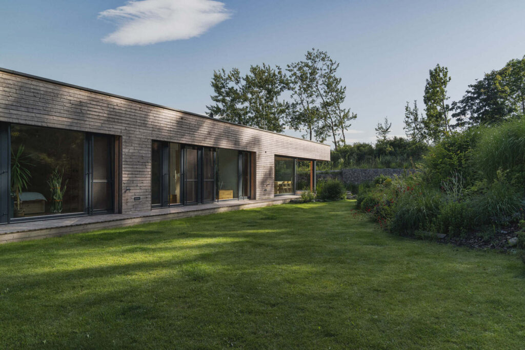 Družinska hiša, ki se skriva v majhni vasici, nedaleč od češke prestolnice, je zasnovana kot odziv pokrajine, v katero je umeščena. Okoliški travniki bodo namreč v kratkem pozidani, zato se je arhitekt Lukáš Pejsar iz studia 3AE odločil zasnovati hišo, ki bo skupaj z vrtom lastnikom zagotavljala intimen prostor za bivanje in druženje.