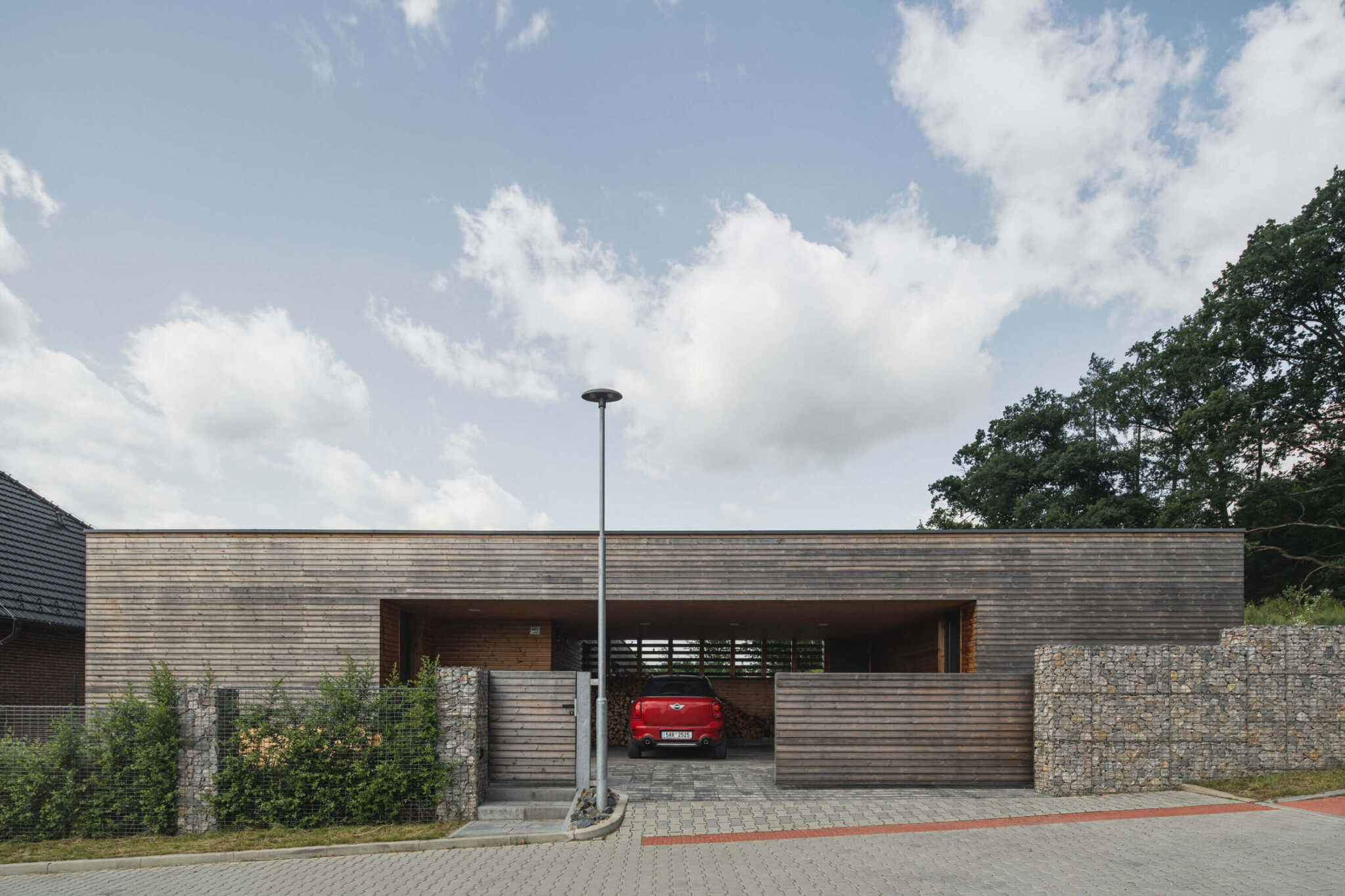 Družinska hiša, ki se skriva v majhni vasici, nedaleč od češke prestolnice, je zasnovana kot odziv pokrajine, v katero je umeščena. Okoliški travniki bodo namreč v kratkem pozidani, zato se je arhitekt Lukáš Pejsar iz studia 3AE odločil zasnovati hišo, ki bo skupaj z vrtom lastnikom zagotavljala intimen prostor za bivanje in druženje.