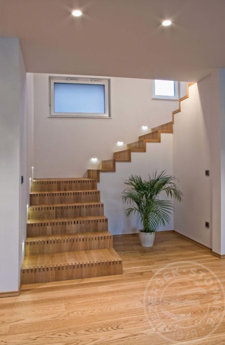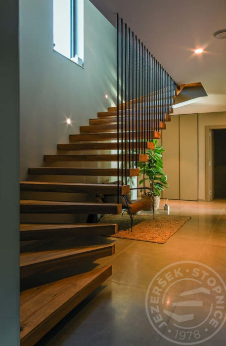 Kaj pa videz? Pri izbiri ograje se investitorji pogosto odločajo med lesenimi, kovinskimi, steklenimi ali kombiniranimi izvedbami. Les daje mehkobo in toplino, kovina deluje sodobno in zračno, medtem ko steklo ohrani maksimalno pretočnost svetlobe in občutek prostornosti. Ključno je, da ograja sledi značaju stopnic. Če je stopnišče minimalistično, naj bo tudi ograja lahkotna, če so stopnice bolj klasične ali masivne, pa je lahko ograja izrazitejša.