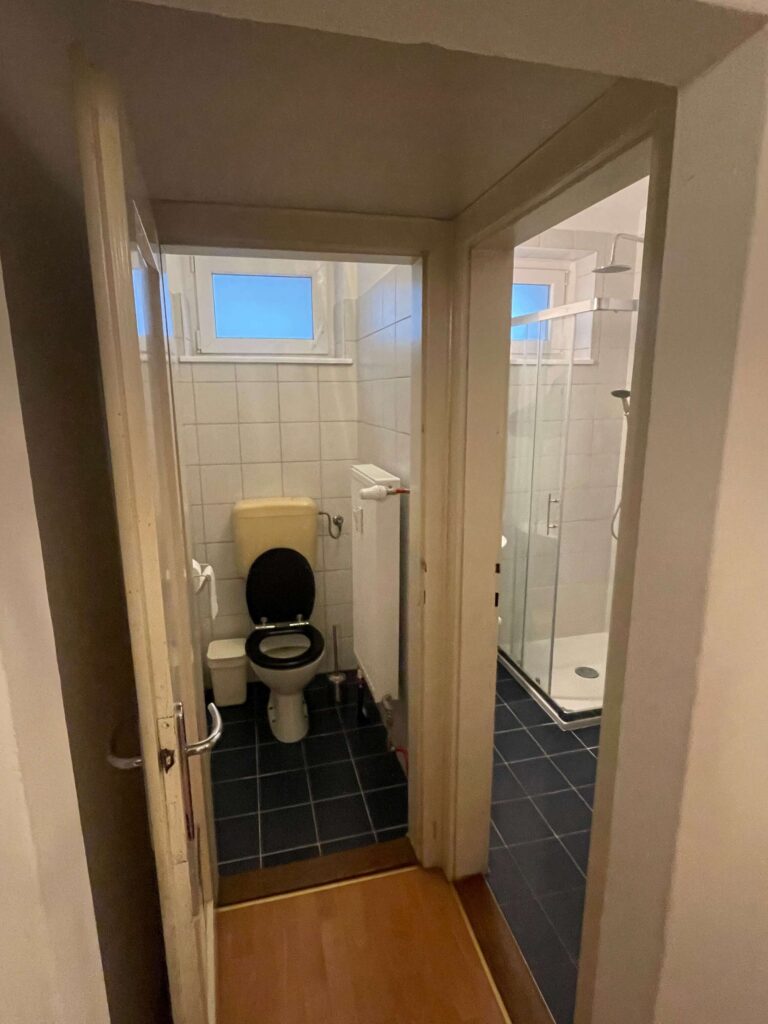 Stanovanje je pred prenovo nosilo vse značilnosti poznejših, nekoliko nepremišljenih posegov. Originalni materiali so bili prekriti z novejšimi sloji, prostori so bili funkcionalno razdrobljeni, interjer pa brez izrazite identitete. Kopalnica in kuhinja sta bili zastareli, tloris pa ni izkoriščal potenciala svetlobe in odprtosti. A kljub temu je bilo že na prvi pogled jasno, da se pod površjem skriva kakovostna arhitekturna osnova – predvsem v razmerjih prostorov, višini stropov in prisotnosti originalnih elementov.
