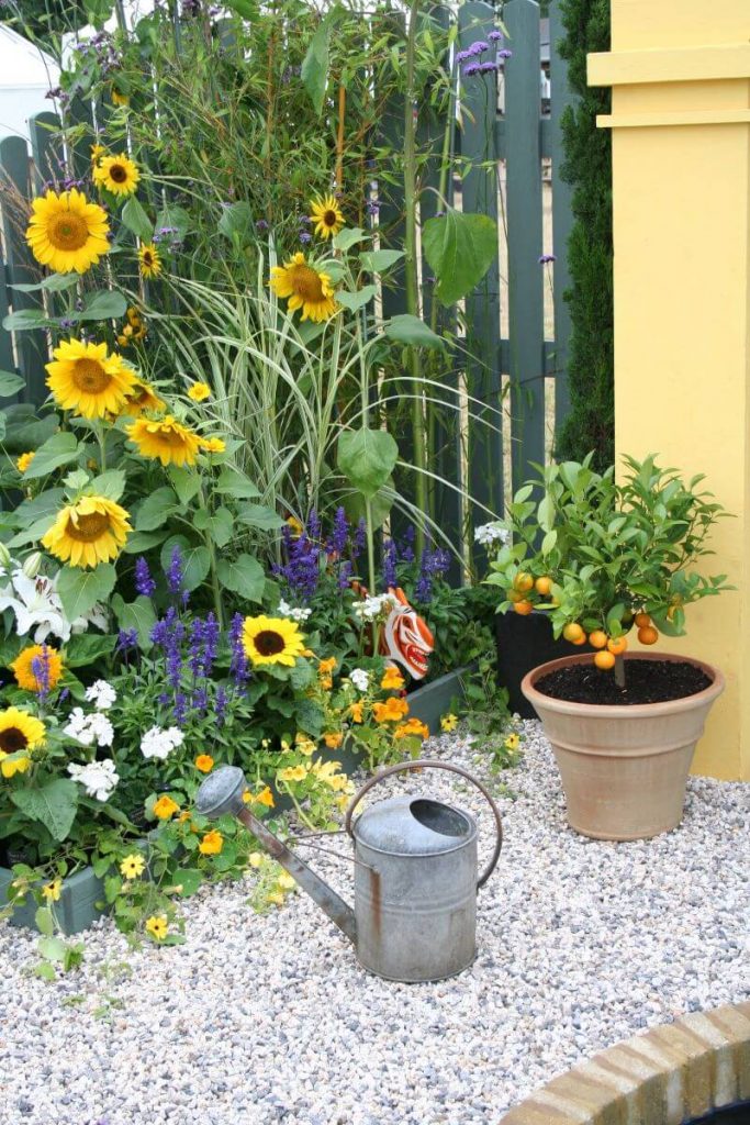 Oranžna je vesela barva, ki spodbuja ustvarjalnost in nas ogreje. Pomaga pri premagovanju potrtosti in utrujenosti, zato bo vrtni kotiček z oranžnimi cvetlicami ali opremljen z oranžnim pohištvom v nas prebudil občutke sreče. Oranžna spodbuja delovanje spolnih organov, blagodejno učinkuje na prebavni sistem in poveča odpornost telesa, zato lahko kdaj pa kdaj utrgamo kak cvet kapucinke in ga primešamo solati ali pa si jeseni ne le tihožitje z bučami, temveč si kakšno hokaido bučko pečeno ali kuhano privoščimo tudi za kosilo. Podarjeno oranžno cvetje oznanja navdušenje in hrepenenje.