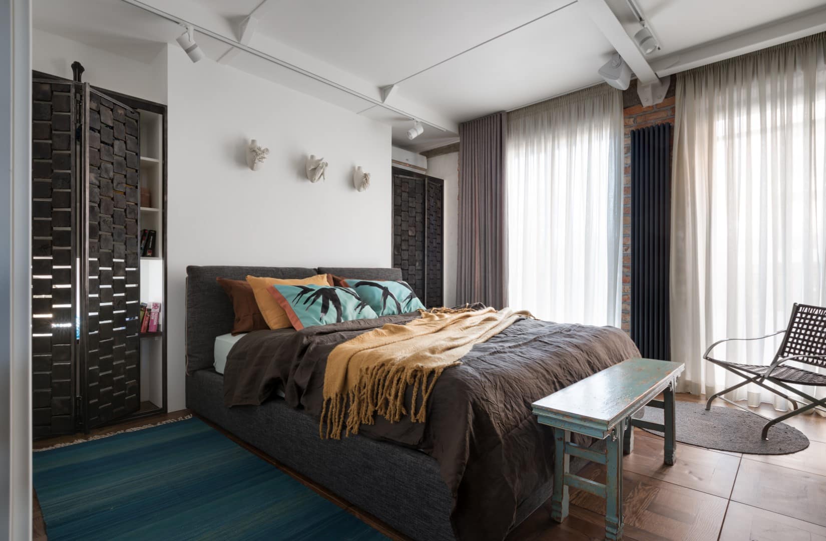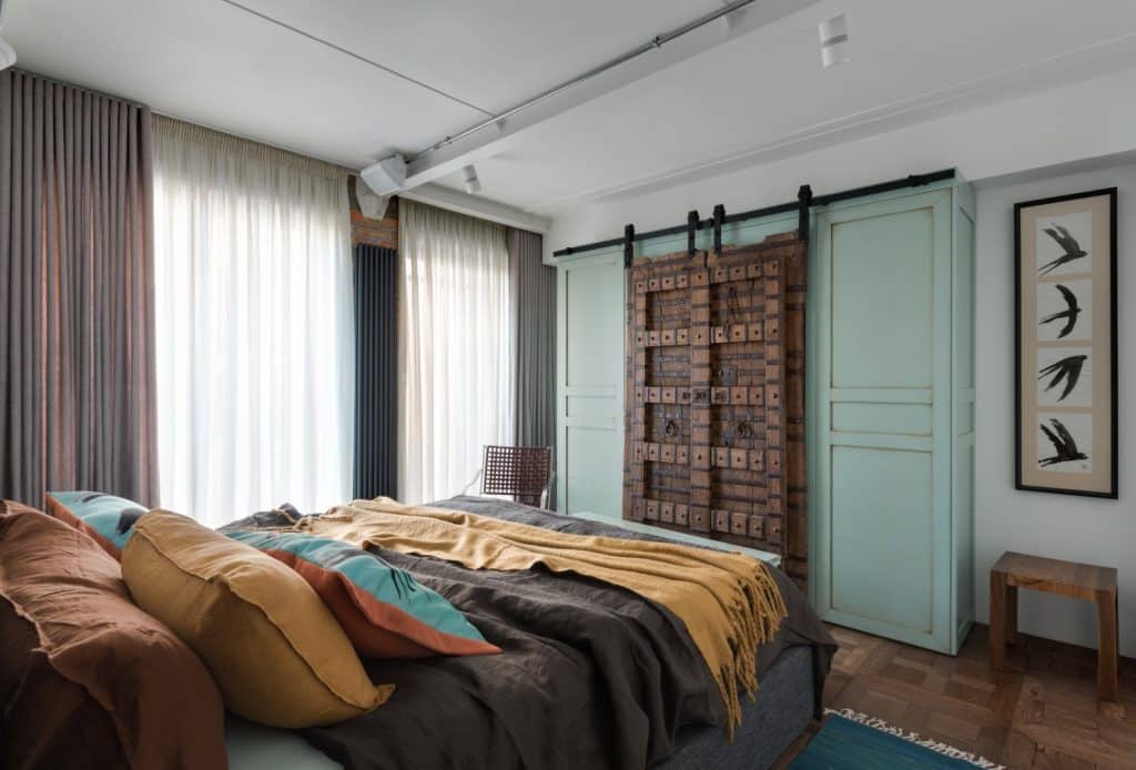 Loft predstavlja preplet različnih kultur, barv, materialov, starin in obrtnih izdelkov, slik, grafitov in skulptur, ki jih je par prinesel s potovanj. Temu orkestru elementov, tako drugačnih, vendar vseeno harmonično povezanih, dirigirata še dve drugi značilnosti stanovanja, in sicer na eni strani velik volumen stavbe, ki je bila prej namenjena poslovnim dejavnostim, z izredno visokim v pločevino oblečenim stropom, razgaljenimi strukturami iz betona in opeke ter lastnikovo željo v takšnem industrijskem okolju ustvariti topel dom.