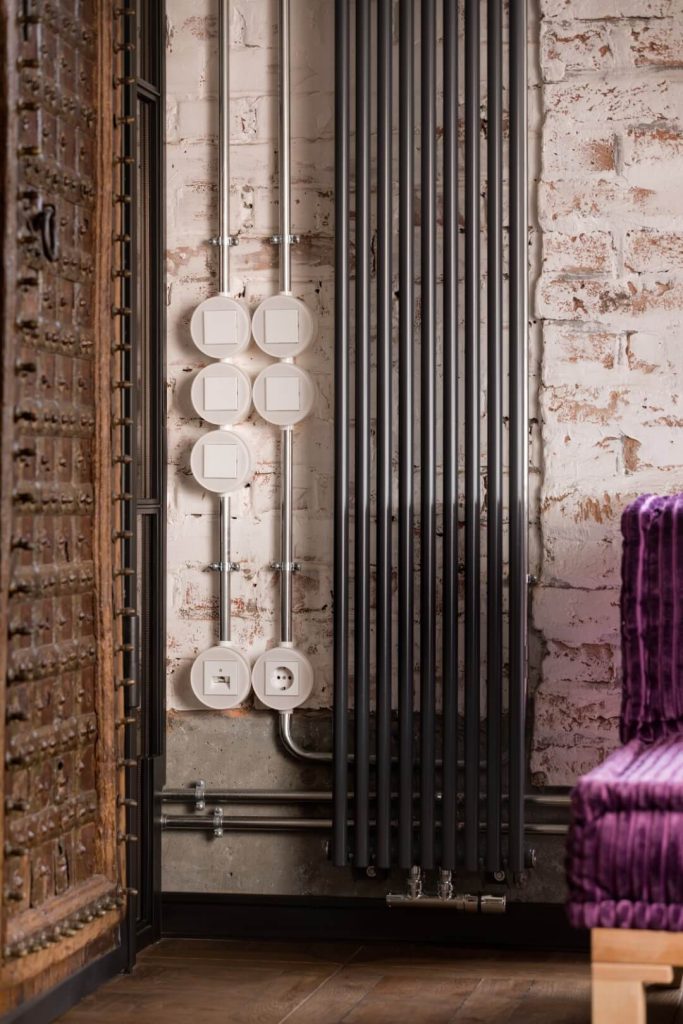Loft je opremljen z dizajnerskim pohištvom in usnjenimi zaključki, tla so deloma lesena deloma kamnita z mozaičnimi dodatki, zanimiv je v zeleno keramiko oblečen kamin, zračne in vodne cevi pa prepredajo stene in strop. Estetika izpostavljenih cevi, ki delujejo dekorativno, se kaže tudi v nenavadno velikih radiatorjih Antrax v antracitni mat barvi ter z različnimi vertikalnimi postavitvami v dnevni sobi, spalnici in kopalnicah. Zanje je značilno izredno varčno delovanje, skladno s filozofijo lastnikov, da živita v trajnostnem, prijetnem domu, kjer je vsaka podrobnost skrbno premišljena, oblikovana in izbrana.