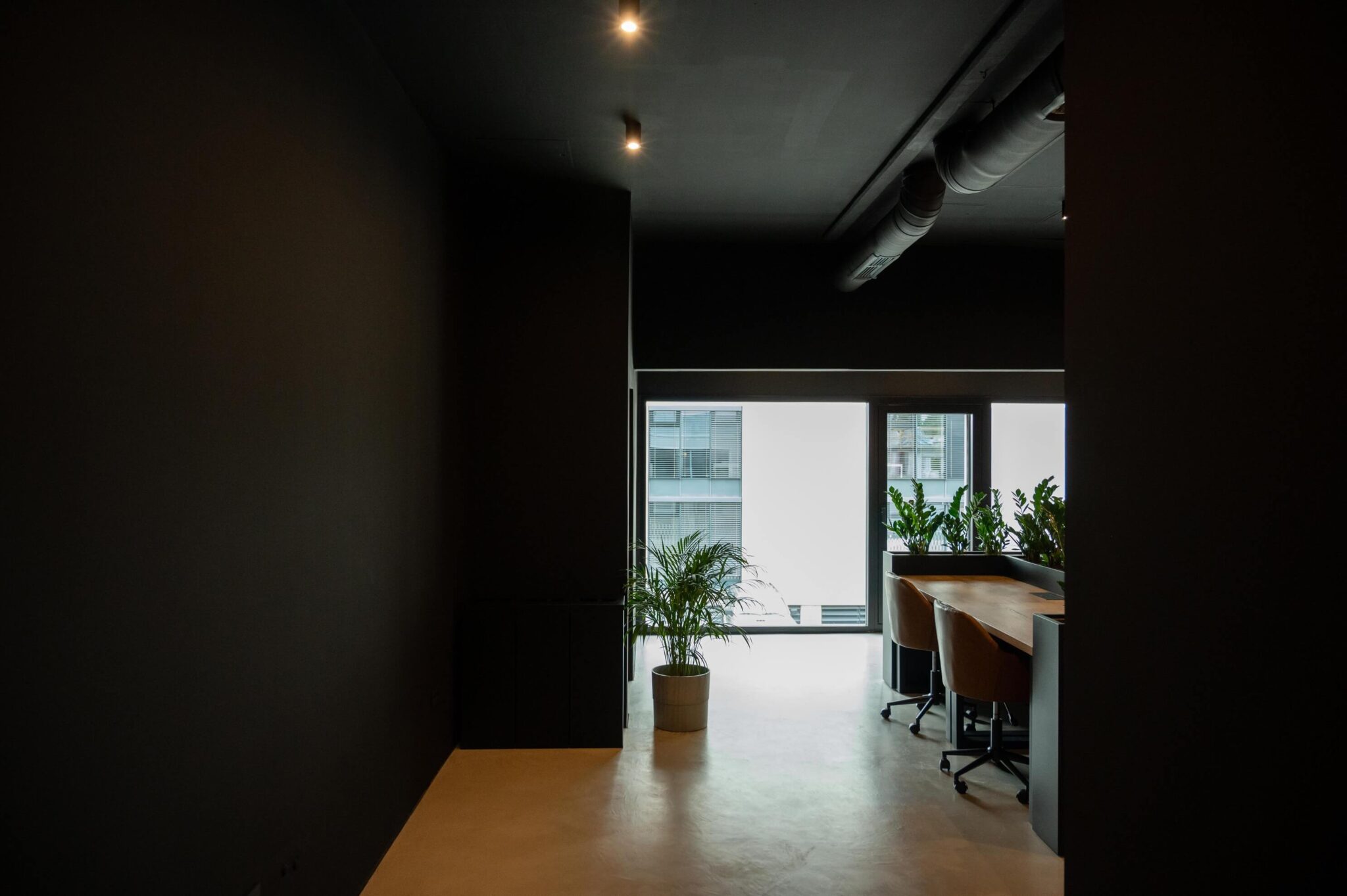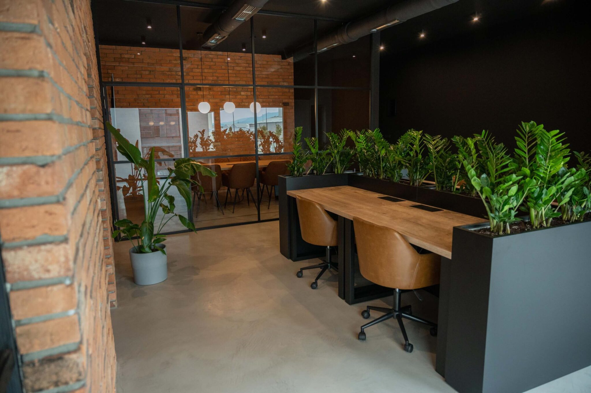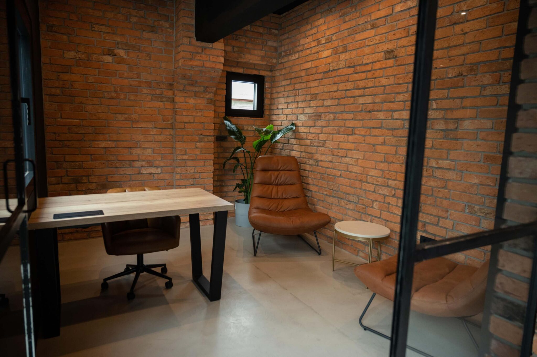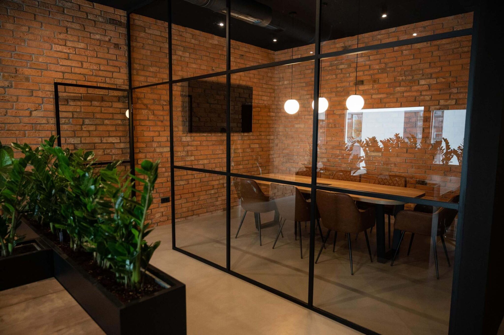 Čeprav je bila vizija jasna, je pot do končnega rezultata zahtevala obsežen poseg. Prenova je trajala sedem mesecev in je zajemala rušitev predelnih sten, popolnoma nove elektro, vodovodne in prezračevalne napeljave ter vgradnjo sodobnega ogrevalnega sistema. Položili so več kot 200 kvadratnih metrov keramike in opečnih oblog, na novo zasnovali vse pode in notranje stene ter zamenjali vsa okna. Opečni zidovi prostoru dajejo avtentičen industrijski utrip, medtem ko velike steklene površine omogočajo transparentnost in stik med sodelavci. Dodatno so v projekt vključili obsežna mizarska dela po meri, ki združujejo toplino lesa z robustnostjo kovinskih konstrukcij.
