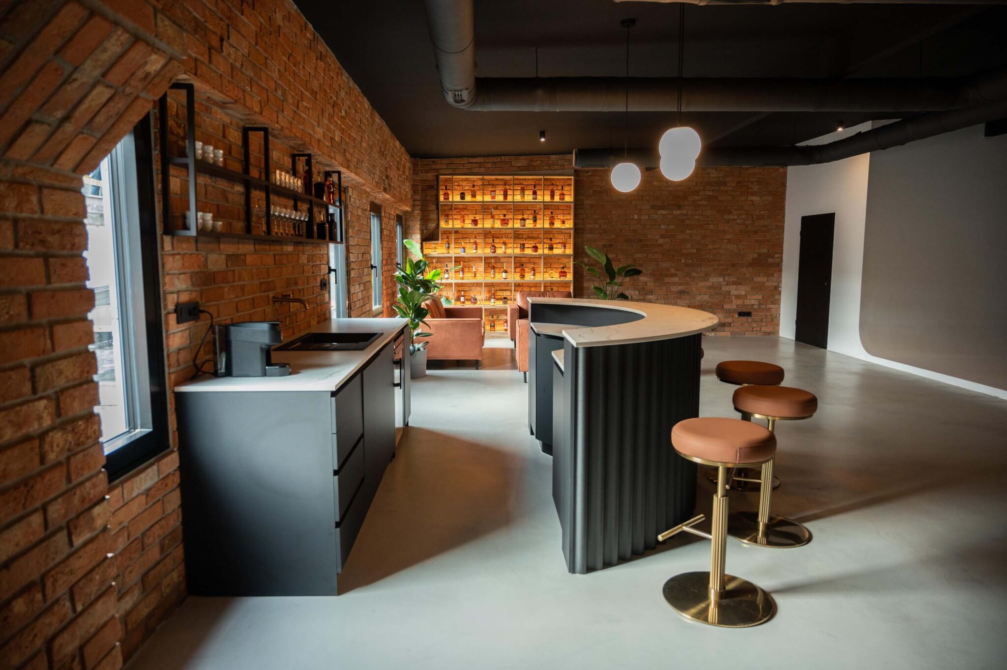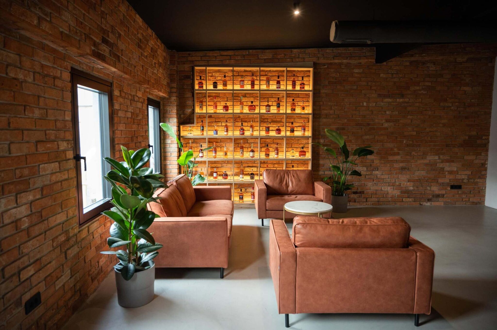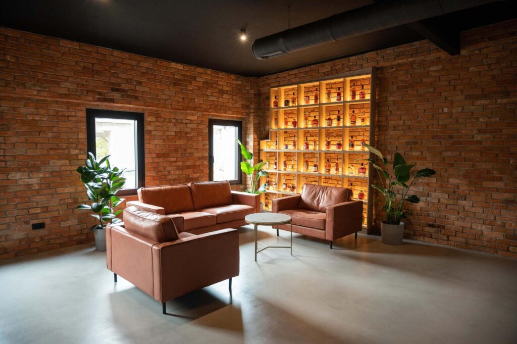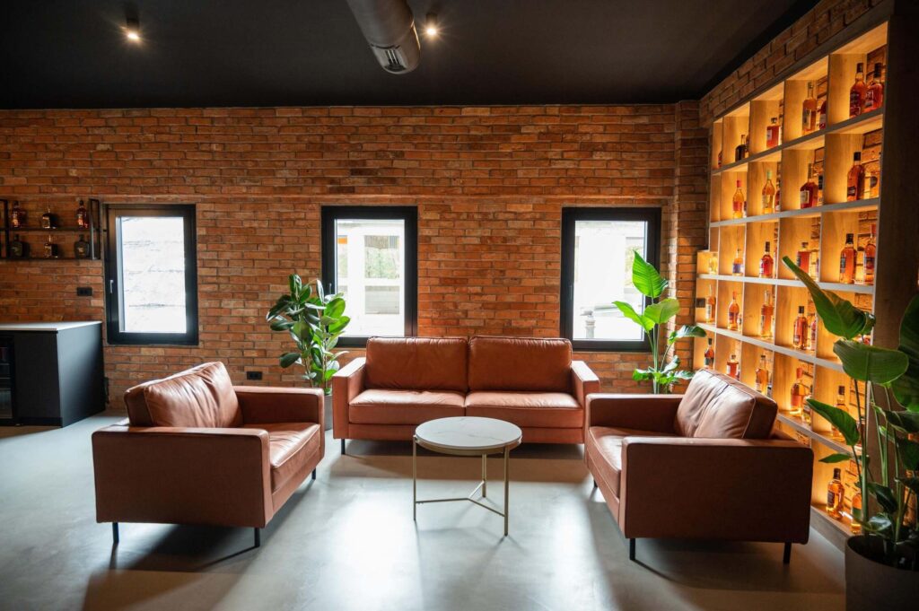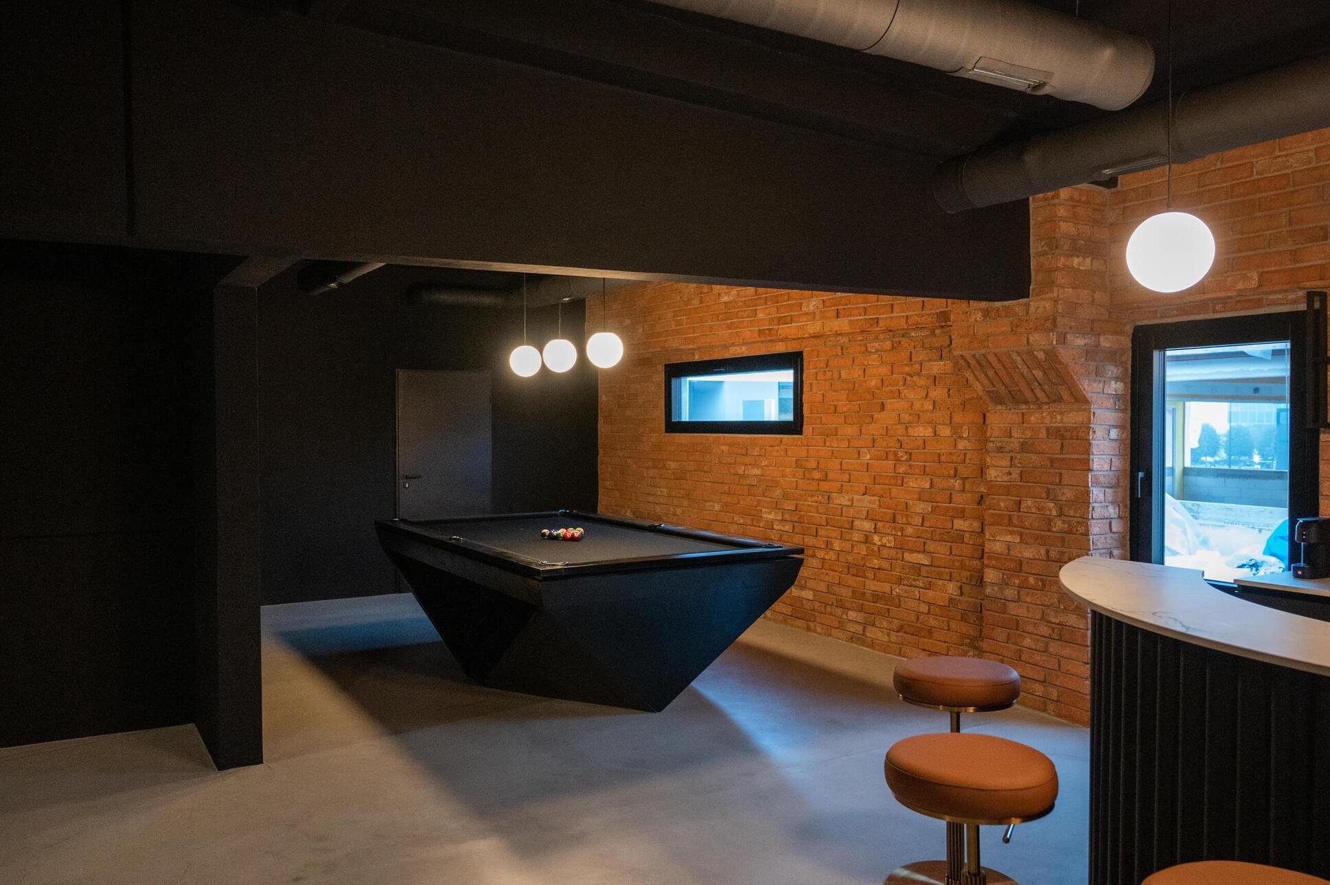 Čeprav je bila vizija jasna, je pot do končnega rezultata zahtevala obsežen poseg. Prenova je trajala sedem mesecev in je zajemala rušitev predelnih sten, popolnoma nove elektro, vodovodne in prezračevalne napeljave ter vgradnjo sodobnega ogrevalnega sistema. Položili so več kot 200 kvadratnih metrov keramike in opečnih oblog, na novo zasnovali vse pode in notranje stene ter zamenjali vsa okna. Opečni zidovi prostoru dajejo avtentičen industrijski utrip, medtem ko velike steklene površine omogočajo transparentnost in stik med sodelavci. Dodatno so v projekt vključili obsežna mizarska dela po meri, ki združujejo toplino lesa z robustnostjo kovinskih konstrukcij.