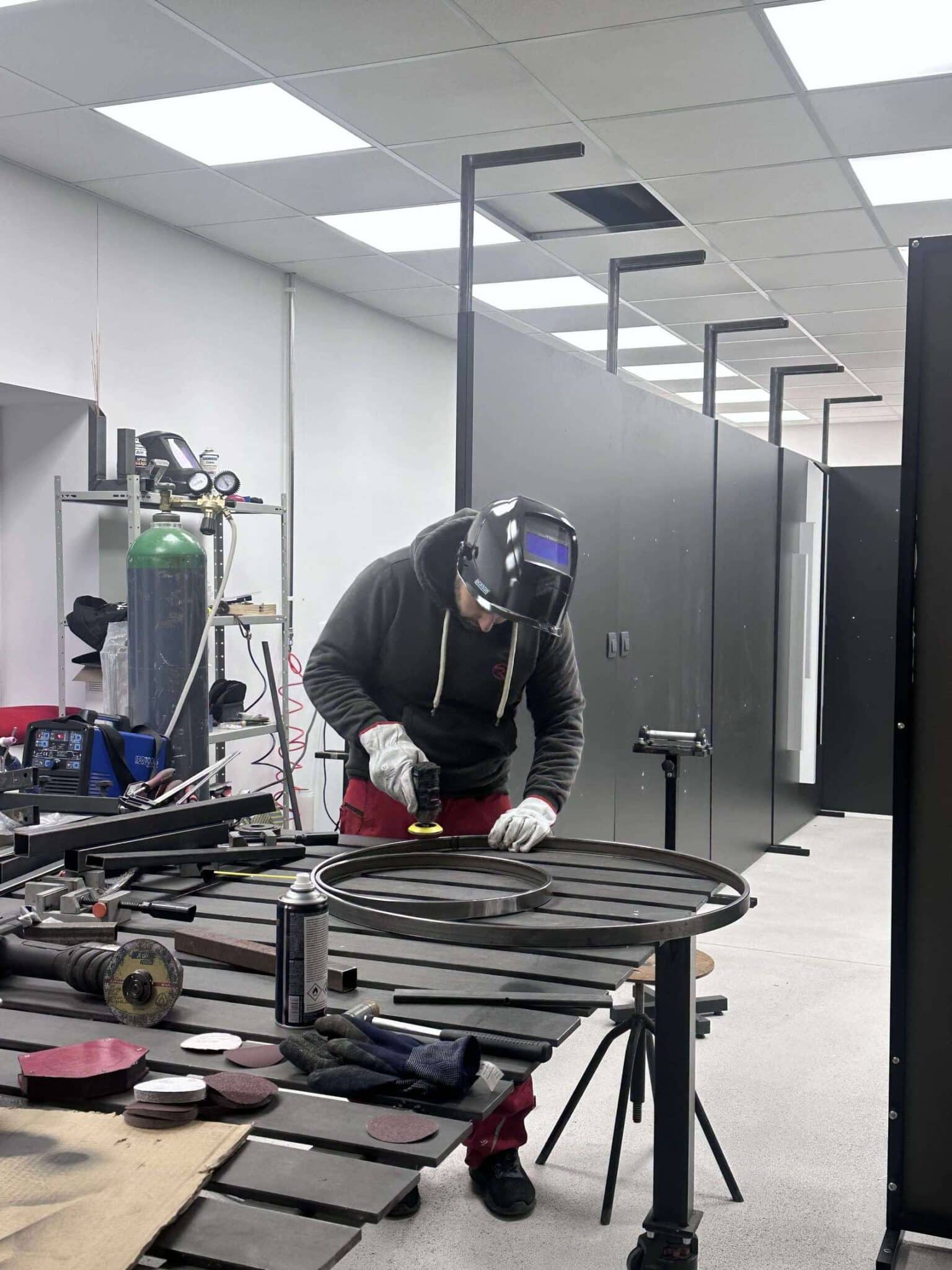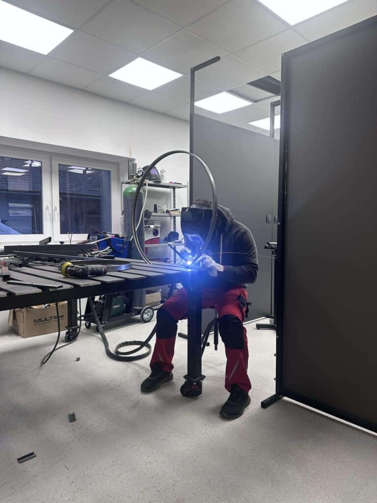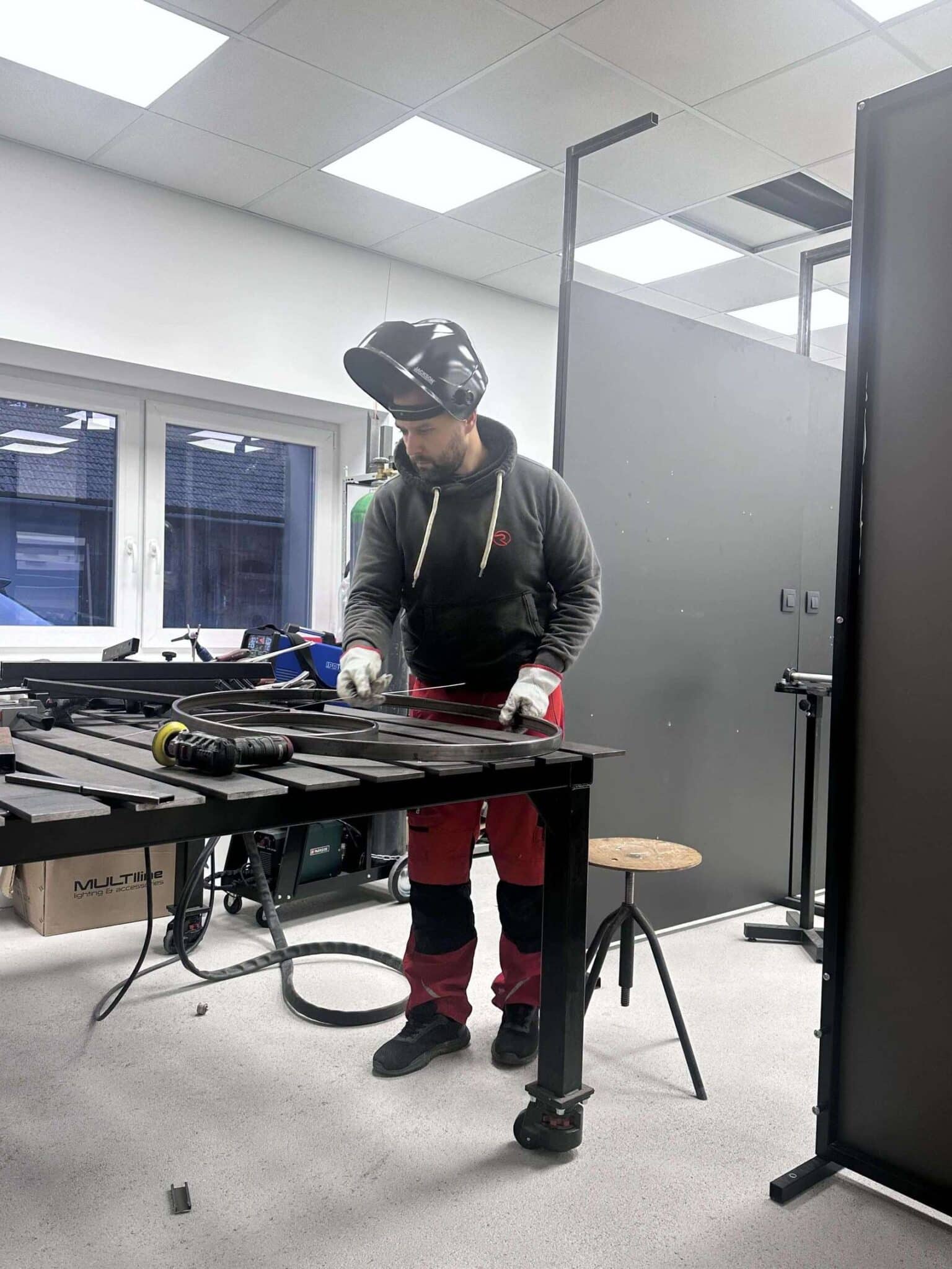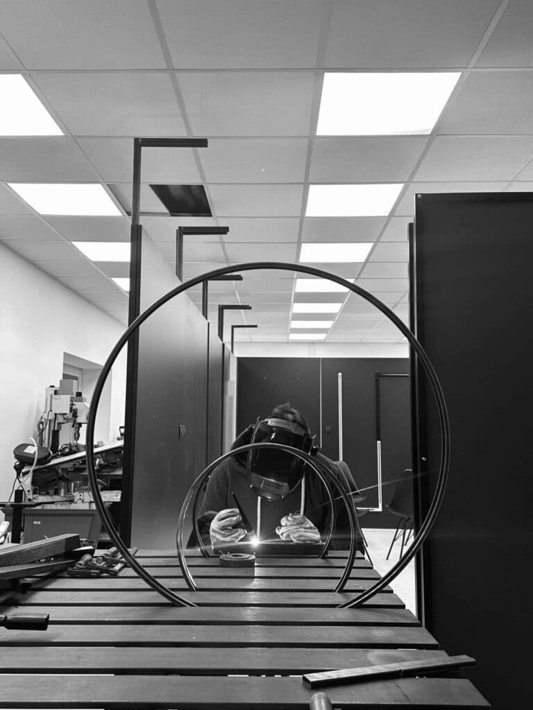 Za potrebe nove oblike je bilo treba ustrezno prilagoditi in nadgraditi tudi orodje v proizvodnji, predvsem za natančno krivljenje cevi. Jaka je bil vpleten v celoten proces, od razvoja, obdelave kovin, krivljenja in TIG-varjenja do končne sestave. Ker gre za zelo specifične in manjše serije, večino naročil izdela kar sam. Večina komponent svetilk je ročno izdelanih, zvarjenih in fino obdelanih, kar jim daje značilen ročni podpis in visoko stopnjo natančnosti.