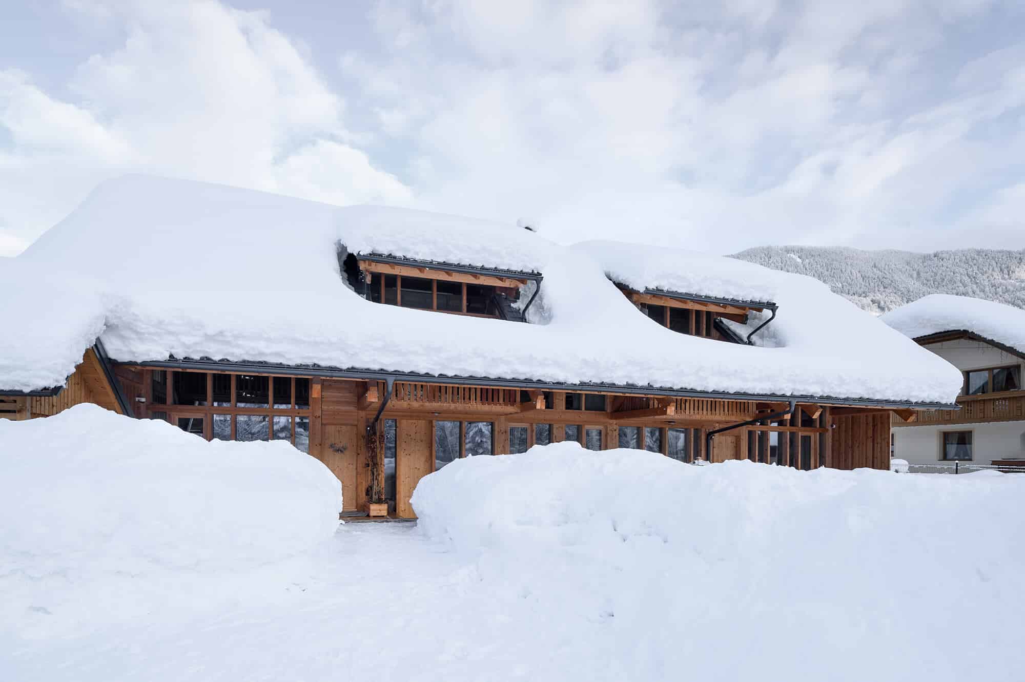 Hiša tako ni drzna v svoji pojavnosti, prav nasprotno – s svojo racionalno postavitvijo in uporabo tesarskega znanja se subtilno staplja s svojo alpsko okolico, hkrati pa družini ponuja tradicionalno udobje na sodoben, svež način.