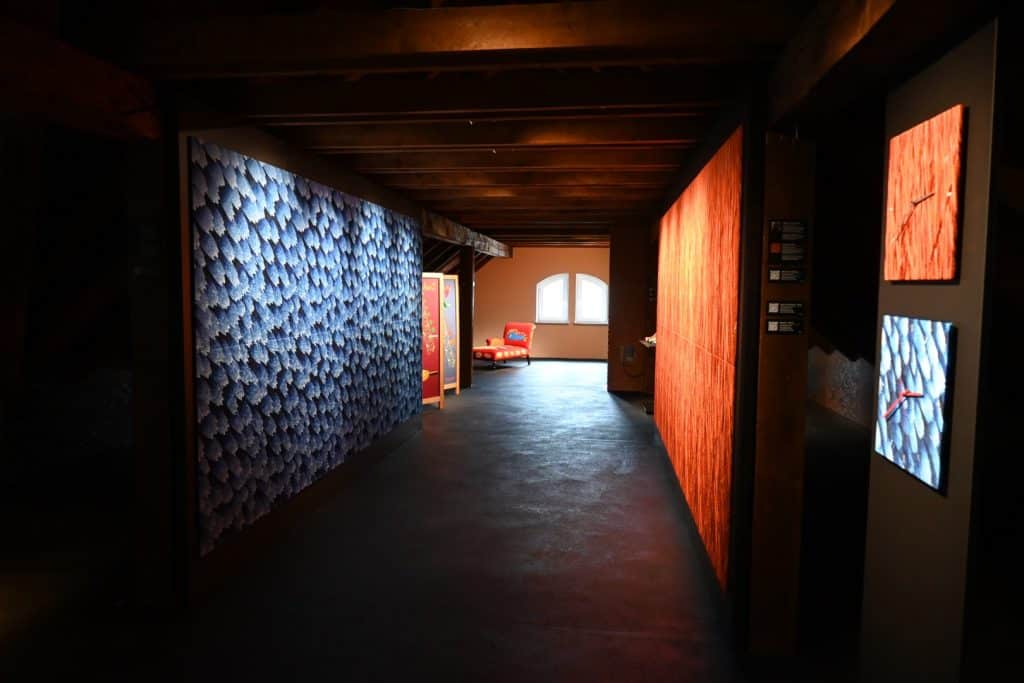Prav v zadnjem sklopu razstave, ki je v najvišji etaži stavbe, je mogoče občudovati nekaj edinstvenih kosov interierja. Recimo vezeno uro slovenske oblikovalke Nike Zupanc, ki je bila razstavljena v milanski galeriji Rossana Orlandi, pri tem pa so uporabili sukance iz reciklirane plastike. Tako z barvami kot motivi izstopajo tudi pohištveni kosi, ki so plod sodelovanja s priznanim slovenskim umetnikom Silvestrom Plotajsom – Sicoejem. Kot prvi nas navduši paravan z obojestranskim vezenjem, naš pogled pa pritegne tudi »Sanjalnik«, počivalnik v izstopajočih barvah in motivih.