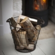 Pleten koš je idealno mesto za shranjevanje drv. Postavljen ob kamin v jedilnem prostoru bo ustvaril topel videz sodobne notranje opreme.