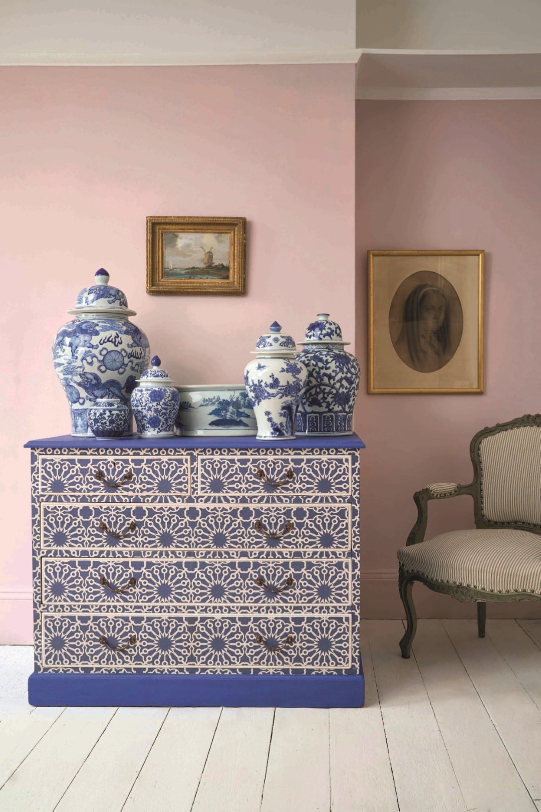 Tam, kjer starih pohištvenih kosov nimate doma, lahko kakšnega kupite prek spleta ali na bolšjem sejmu. A dokler ne najdete točno takšne omare, mizice, stola ali predalnika, kakršnega želite, se lahko poigrate s stenami.