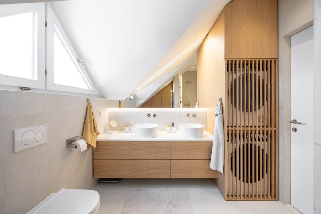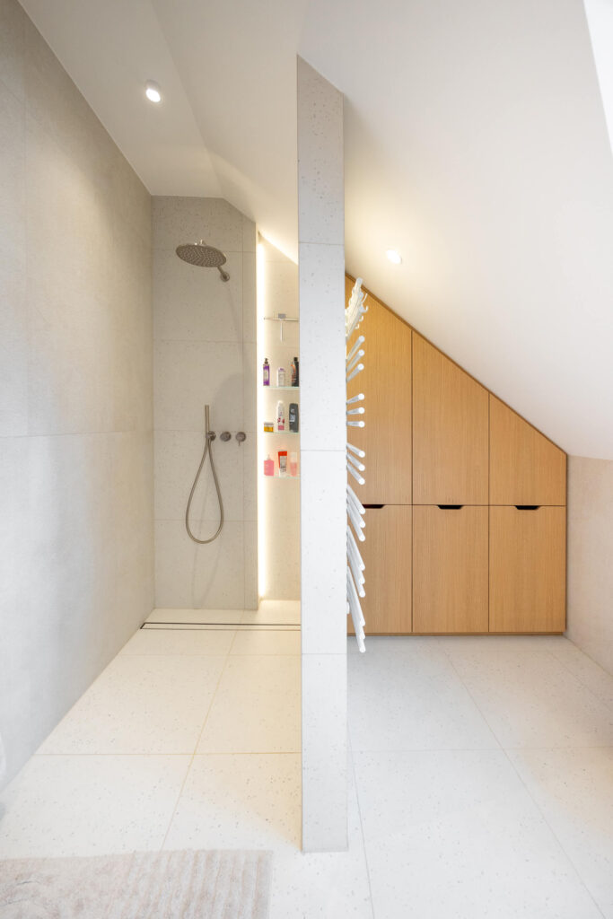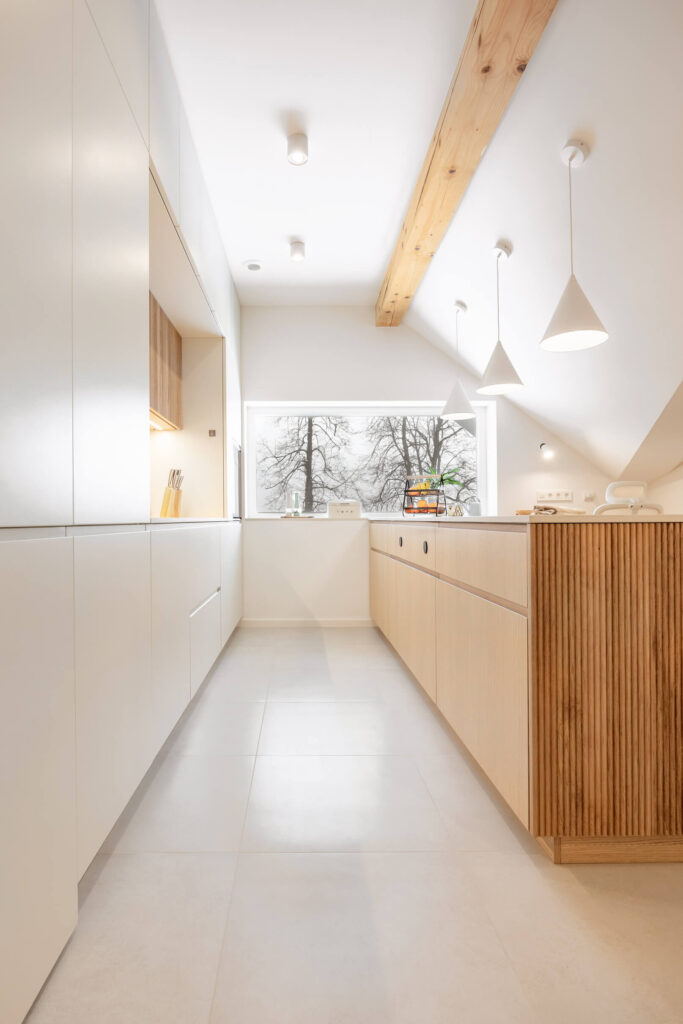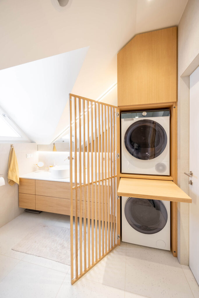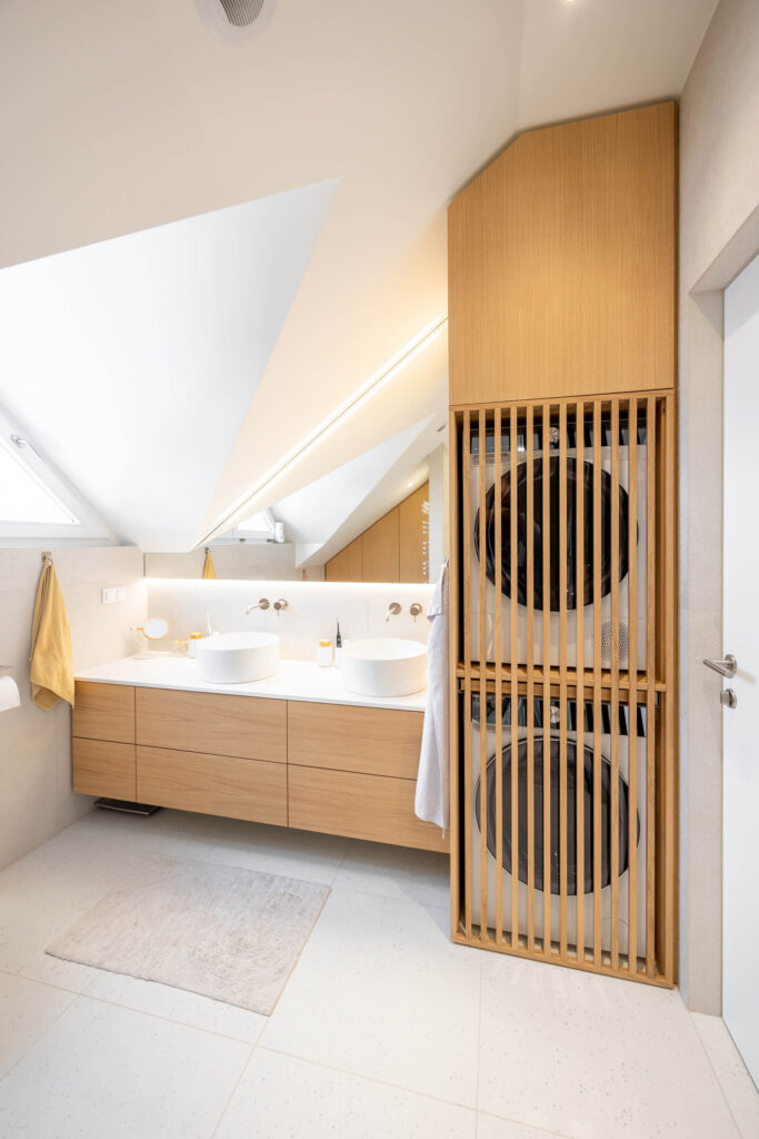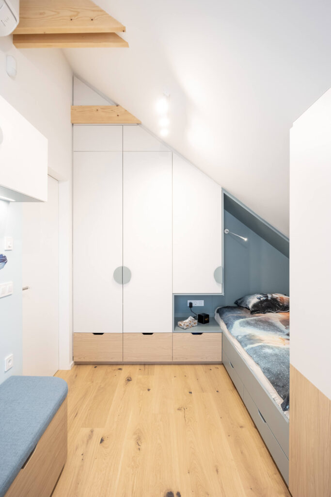 Prenova mansarde ni bila usmerjena v posamezne izstopajoče poudarke, temveč v ustvarjanje usklajene in smiselno zasnovane celote. Rezultat je svetel, pregleden in topel dom, ki spoštuje danosti prostora in jih s premišljenimi rešitvami nadgradi v sodobno bivalno okolje, prilagojeno potrebam družine.