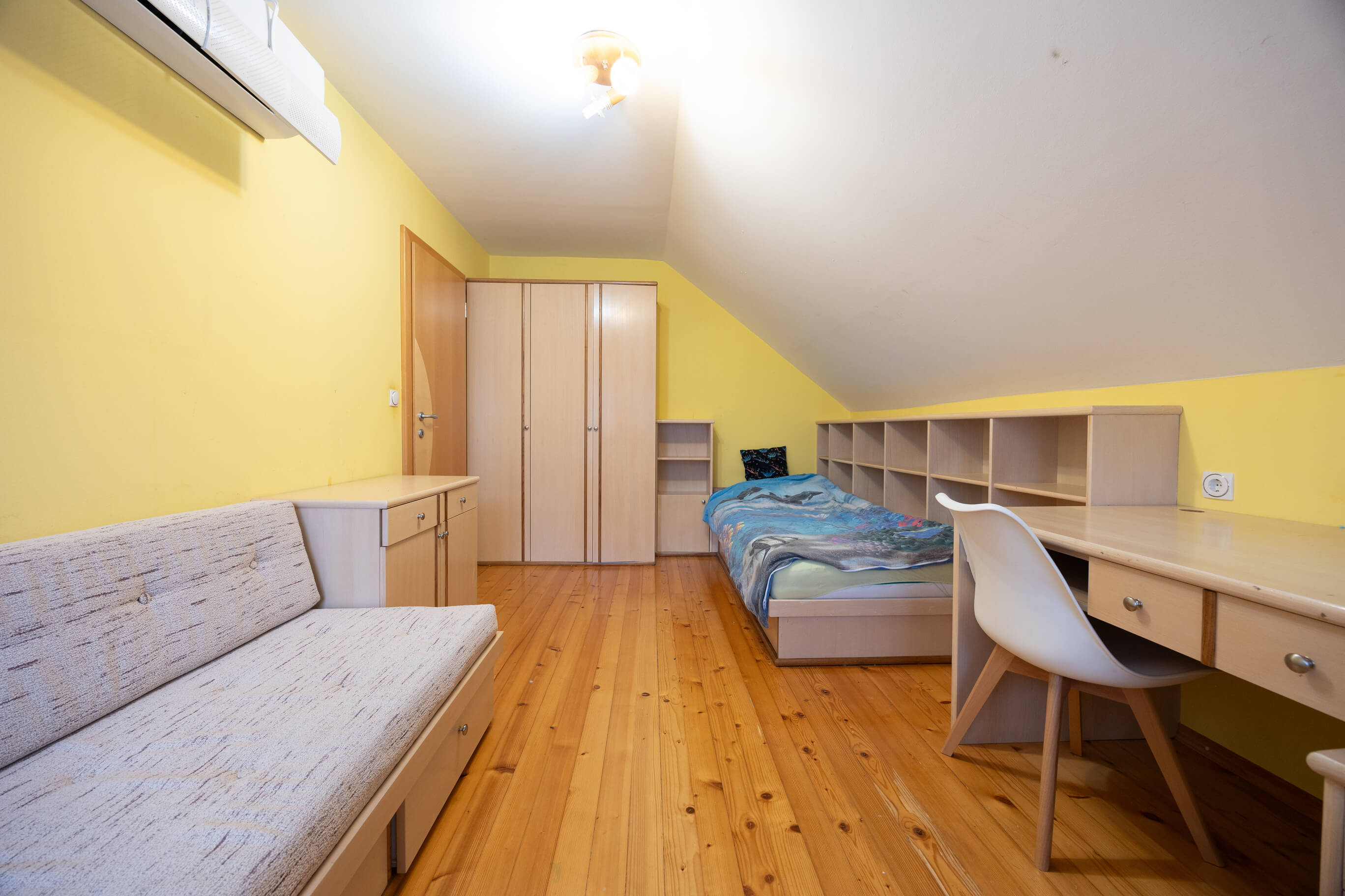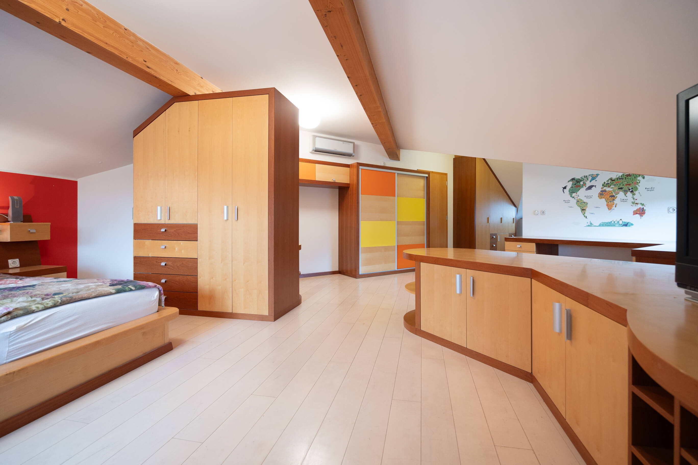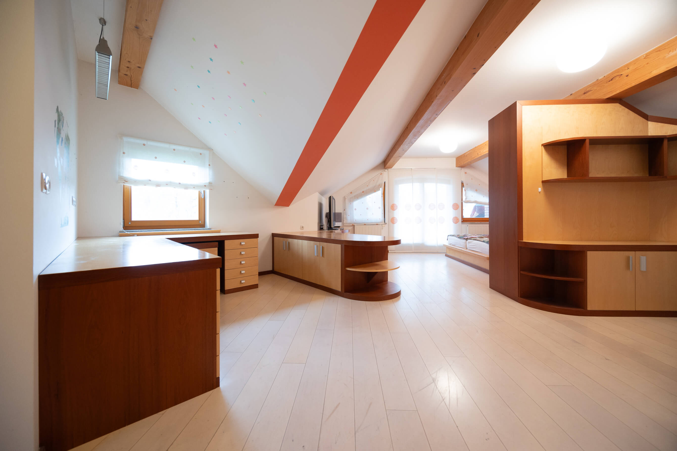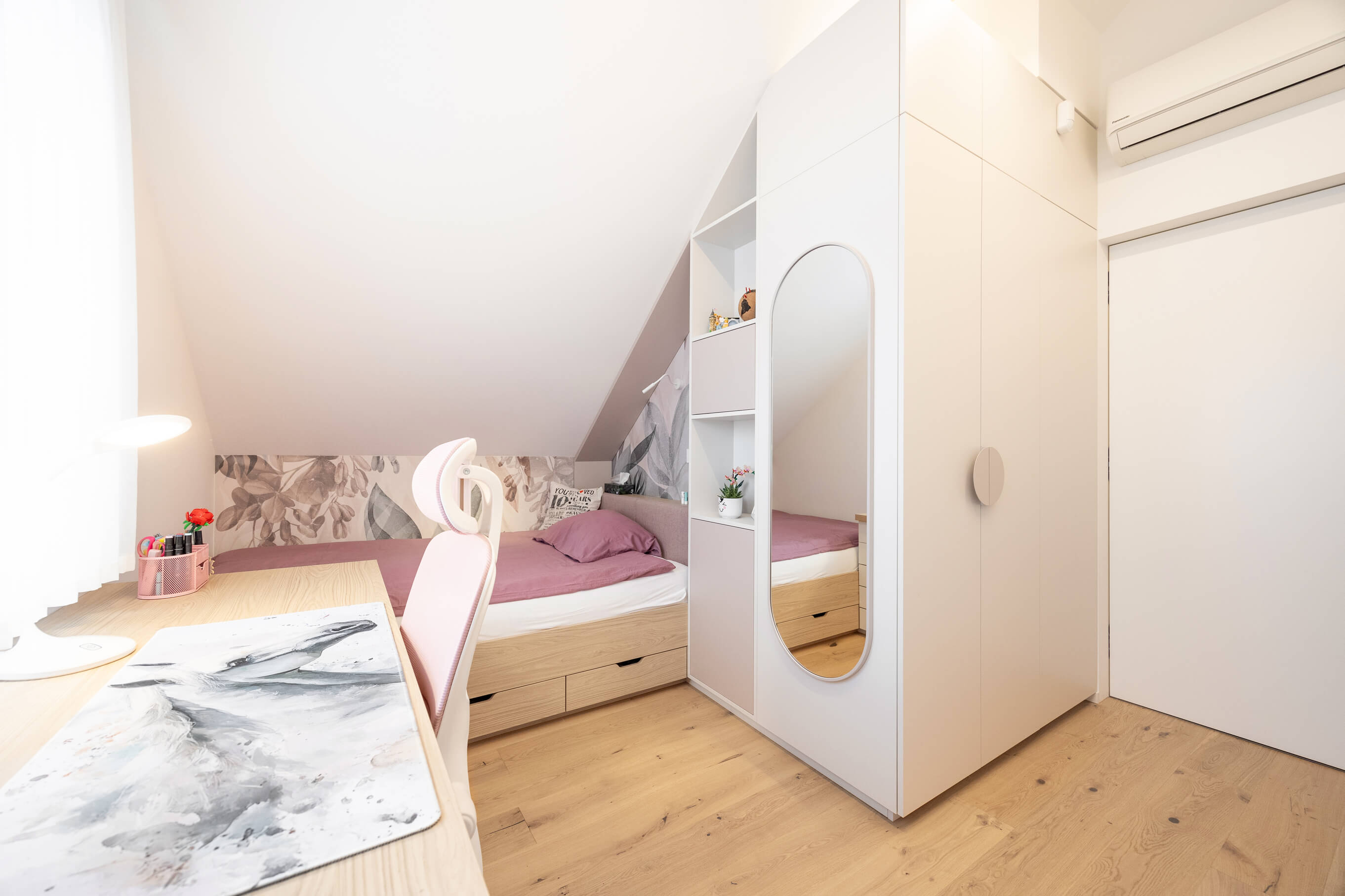 Prenova mansarde ni bila usmerjena v posamezne izstopajoče poudarke, temveč v ustvarjanje usklajene in smiselno zasnovane celote. Rezultat je svetel, pregleden in topel dom, ki spoštuje danosti prostora in jih s premišljenimi rešitvami nadgradi v sodobno bivalno okolje, prilagojeno potrebam družine.