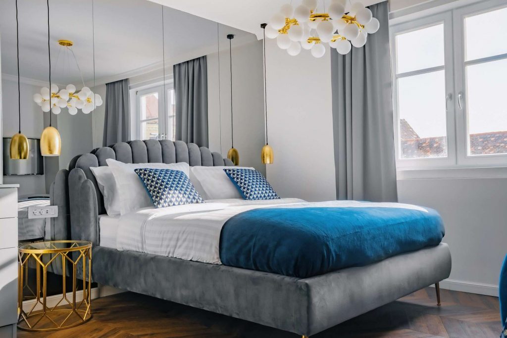 Vodilna nit stanovanja je zlata barva, ki se pojavlja v njegovih različnih elementih. Poleg lestenca, zlatega lista ali nočne svetilke so v tej barvi tudi korita v kuhinji in kopalnici. Sijoči zlati poudarki pripomorejo k prefinjenemu vzdušju, medtem ko barvna paleta poskrbi za odmerek elegance, hkrati pa učinkuje pomirjajoče.