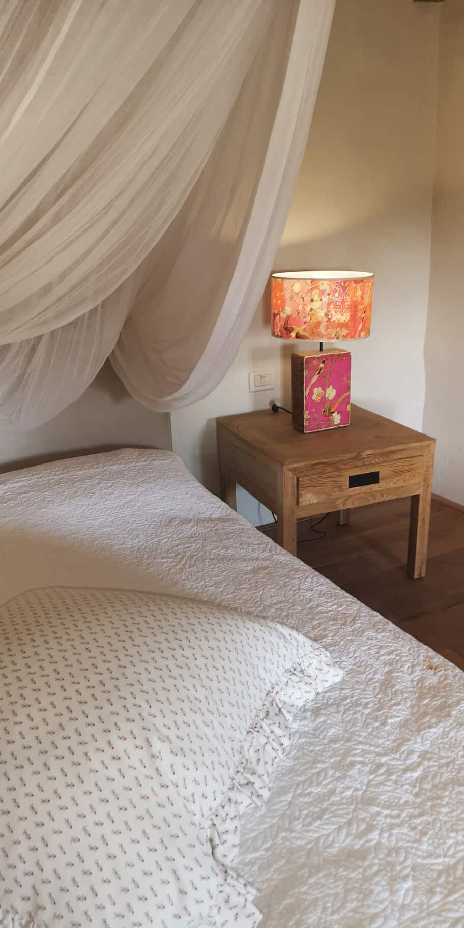 Gladki leseni pod se zlije z debelimi zidovi, obokanimi okni in nizkim stropom, vse to pa sestavlja posodobljeno spalnico iz 19. stoletja.