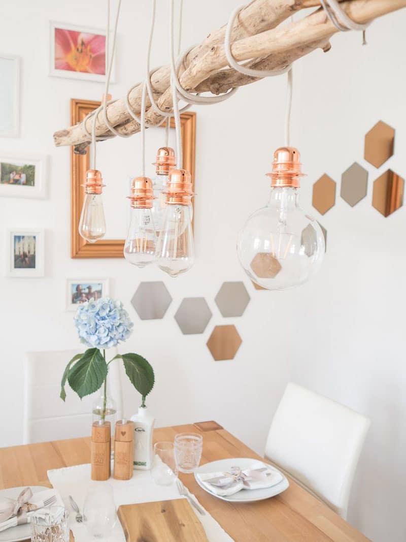 - Pri majhni jedilnici (3 krat 3 metre ali manj) izberimo lestenec, ki v premeru ne presega 50 cm.