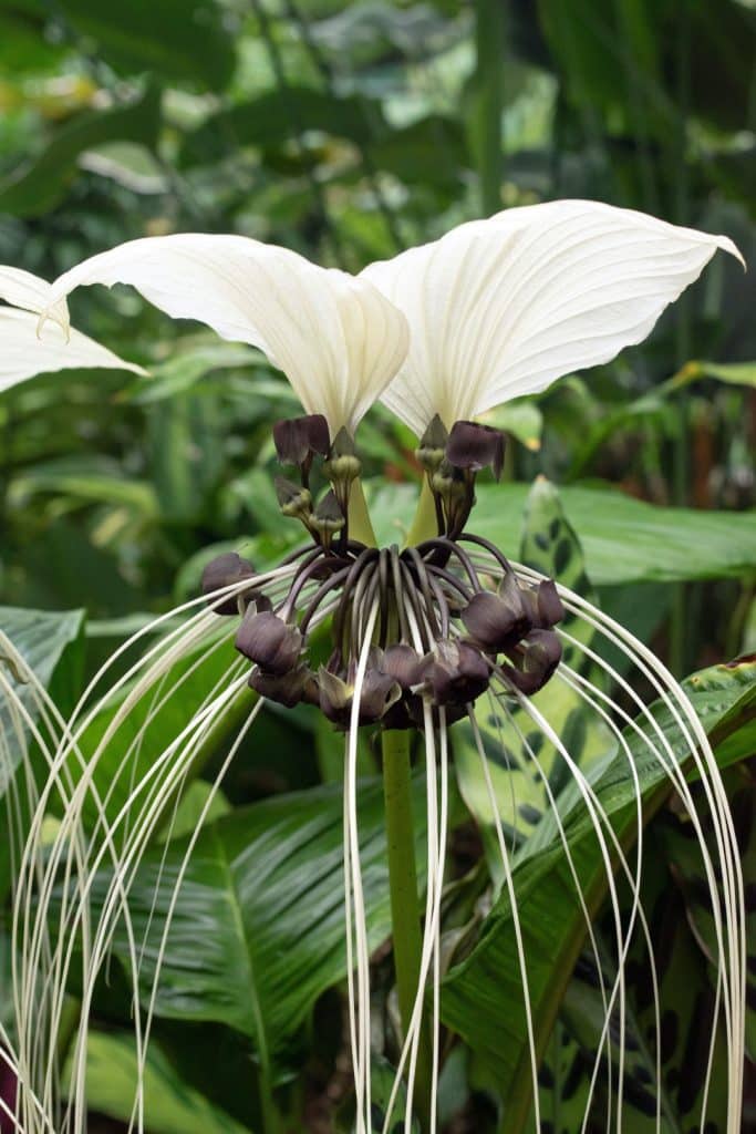 Netopirjeva roža (Tacca chantieri) je vrsta orhideje z dolgimi brkatimi izrastki, dvema cvetnima listoma, podobnima uhljem, in številnimi manjšimi cvetki. Odseva bleščeč vijoličast lesk, ki deluje zelo gotsko – idealno za na vrt gospoda Drakule.
