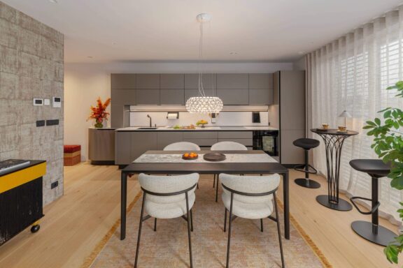Ker je hiša zasnovana za tri generacije iste družine, ima tri nadstropja, 4 spalnice, 2 dnevni sobi, telovadnico in študijsko sobo, višine znotraj nje pa se spreminjajo z zanimivo igro volumnov.