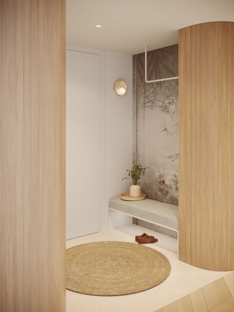 Zanimivo, da stanovalca postavljata udobnost pred funkcionalnostjo, oboje pa pred estetiko. Tem preferencam sta ustregli arhitektki pri izbiri zasnove notranje opreme. Kot vodilo sta Nina Mei Gaiman in Ana Jerše izbrali slog, ki ga opisuje švedski izraz »lagom«, kar pomeni ravno prav, popolno in enostavno, torej v ravnovesju.